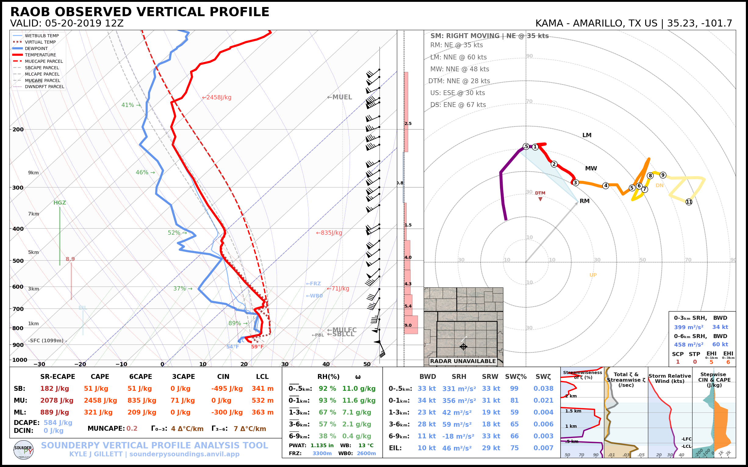 Monday the 20th was a day that stuck out to me multiple days in advance as a really great day in Oklahoma. Classic Oklahoma outbreak type day, with large CAPE, extremely high shear values and SRH that was in the 400-500 range 0-1km. Even at 200+ hours out, the GFS nailed this setup.