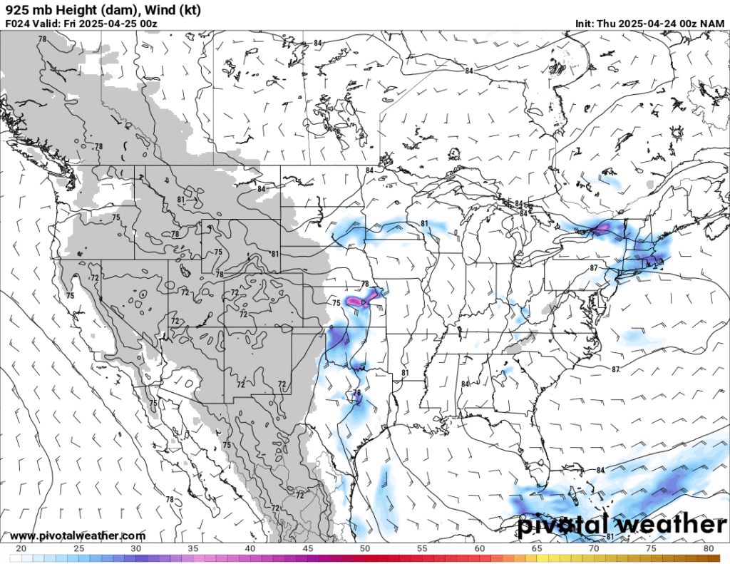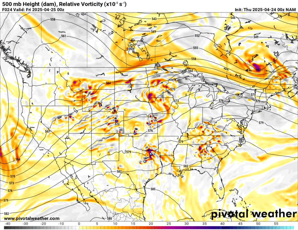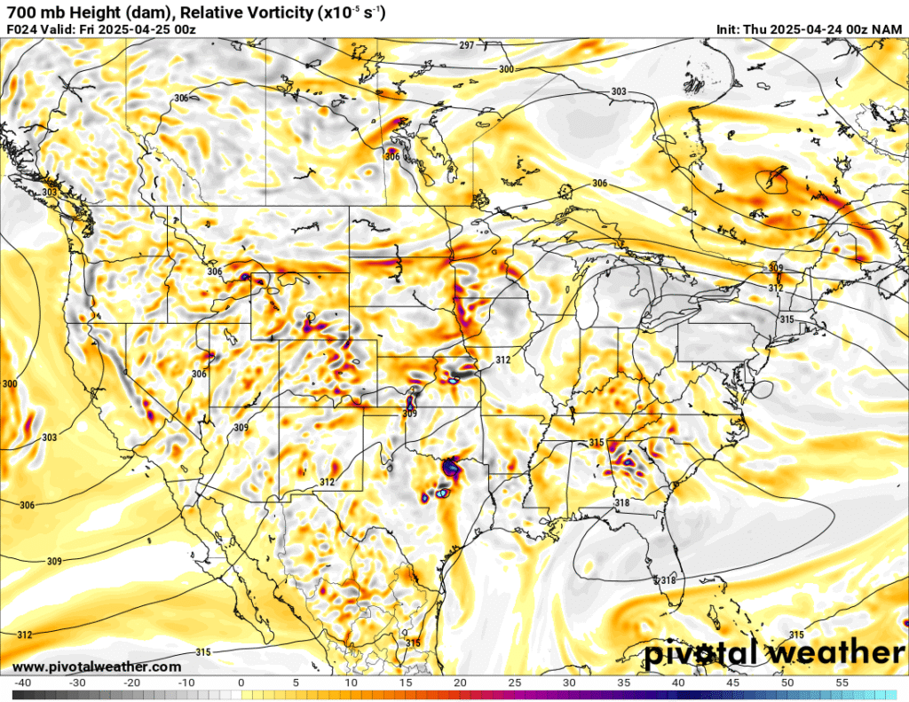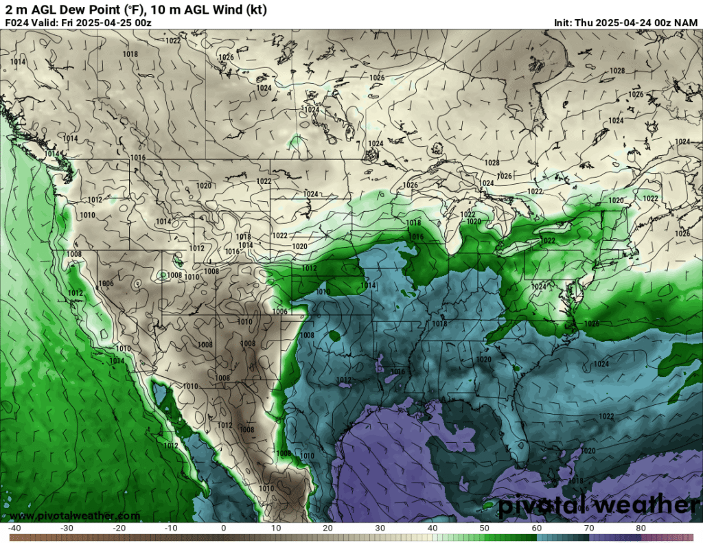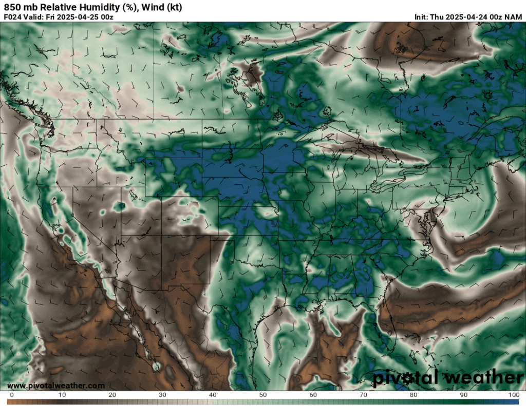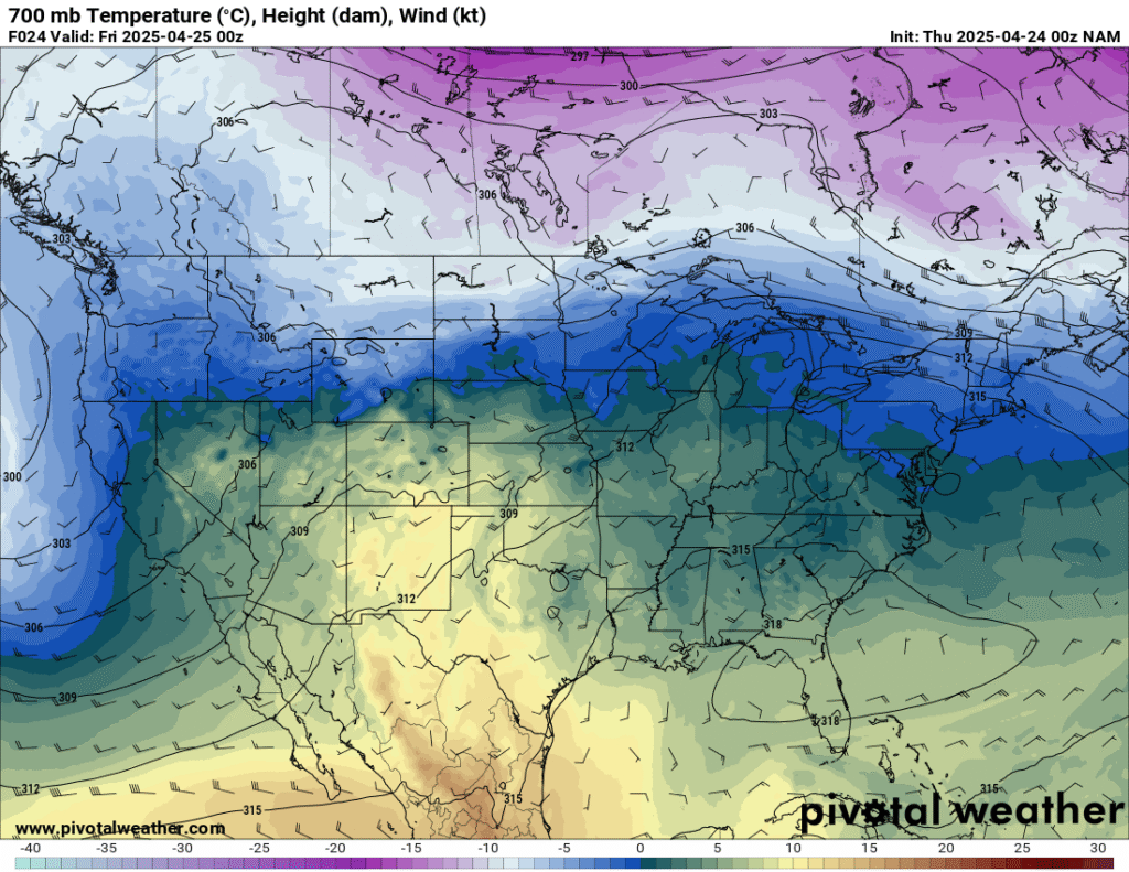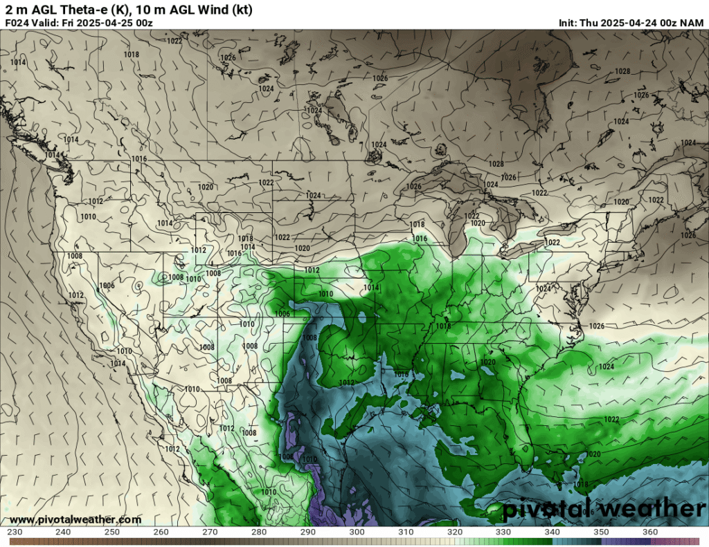 00Z NAM – 24 hour forecast for 7pm CDT April 24, 2025