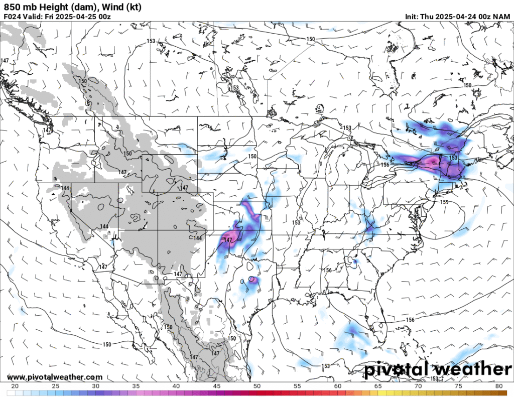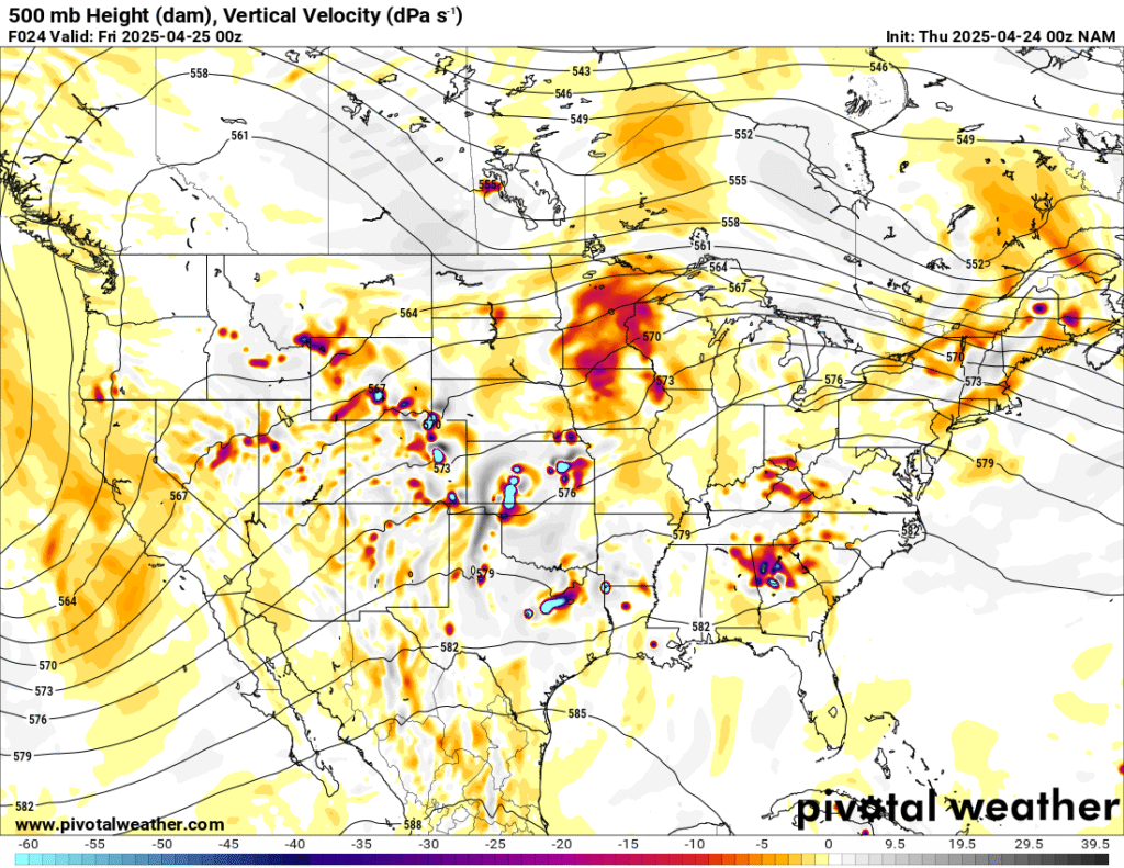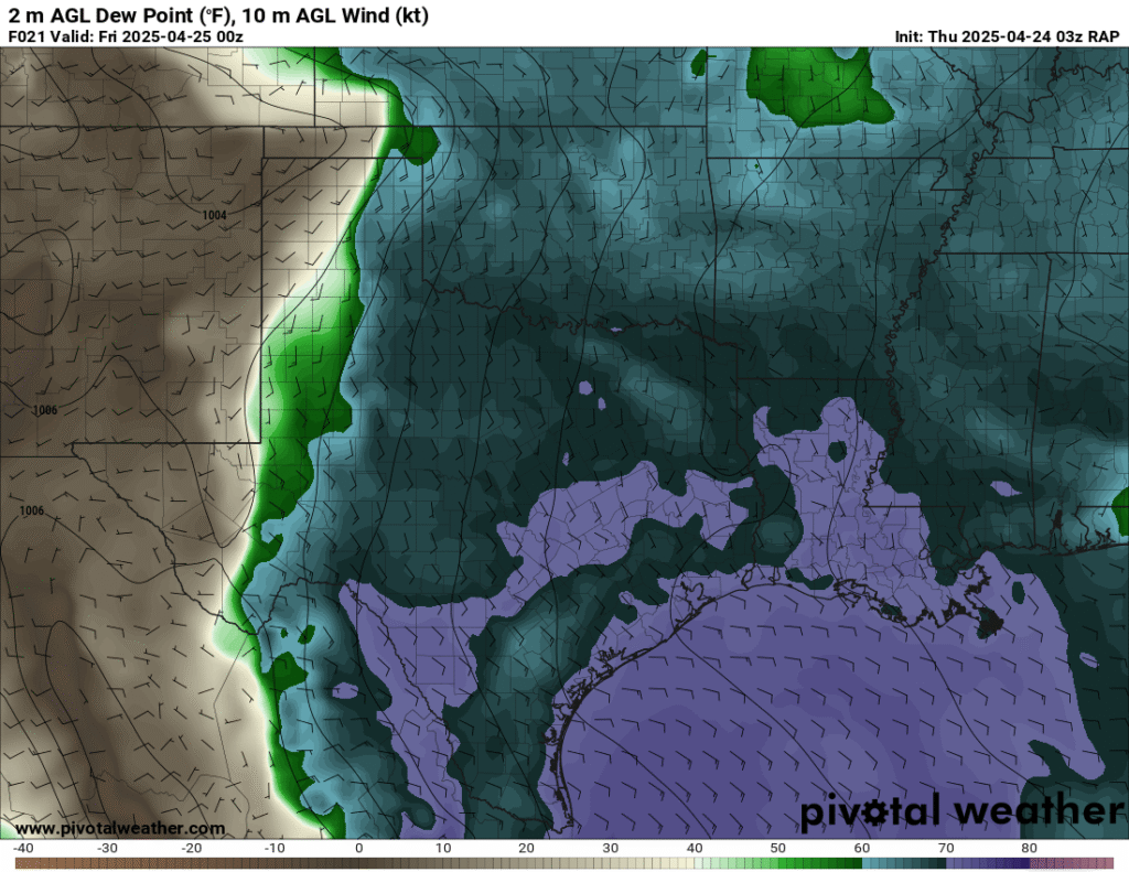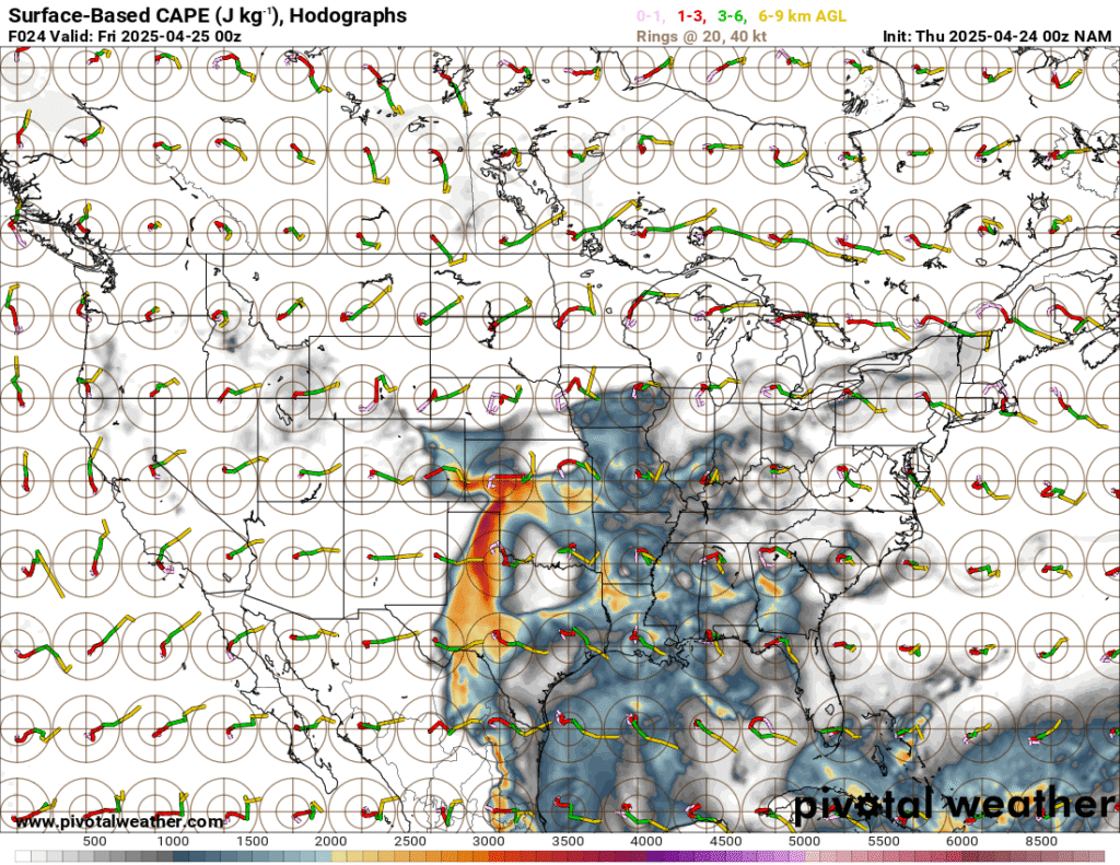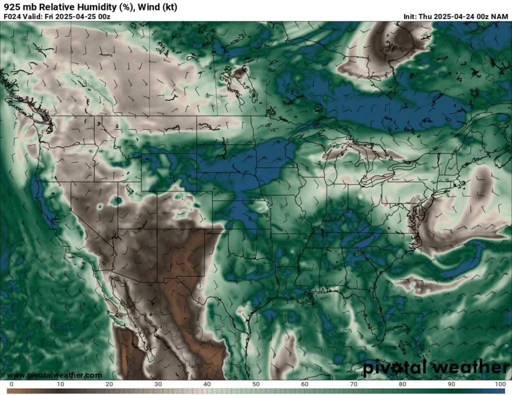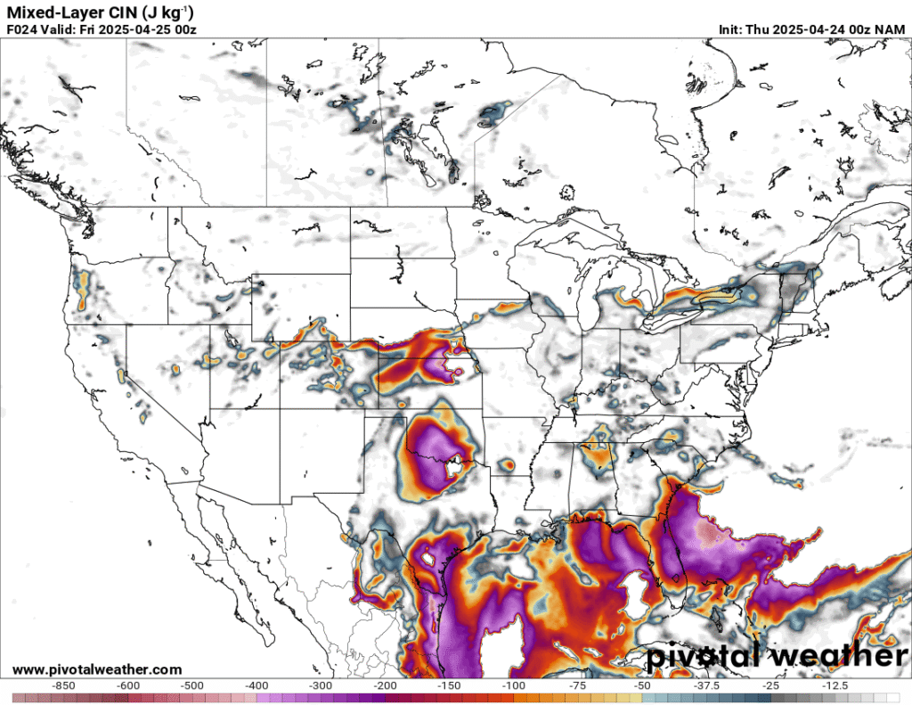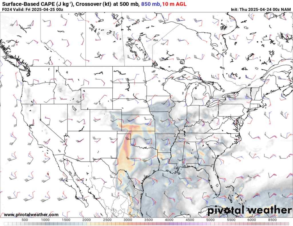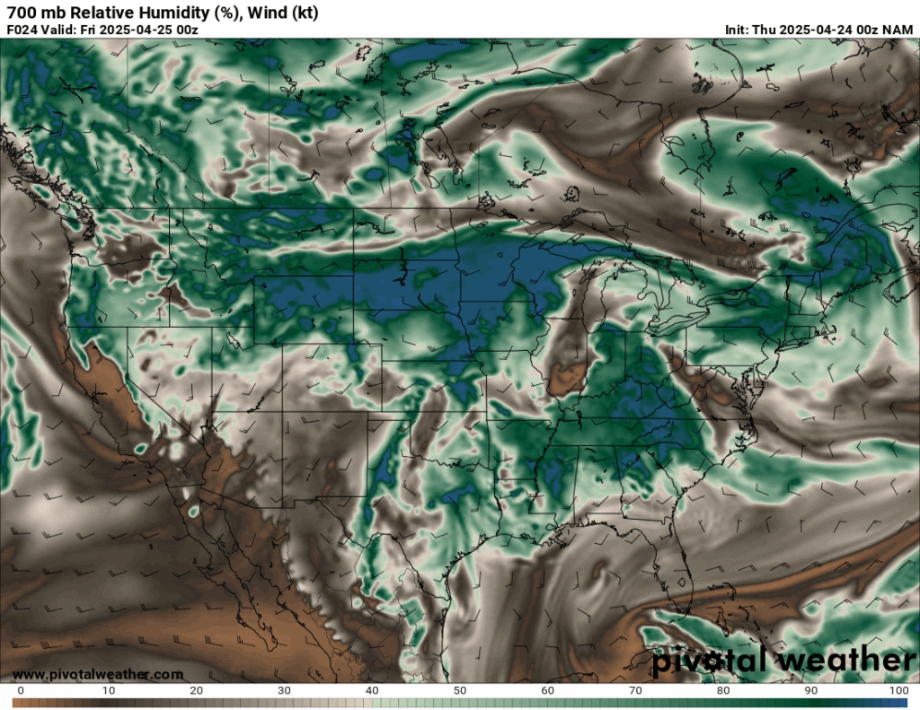 00Z NAM – 24 hour forecast for 7pm CDT April 24, 2025