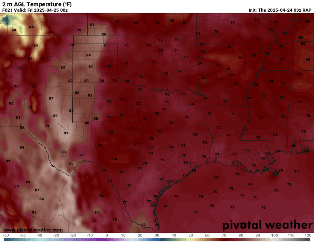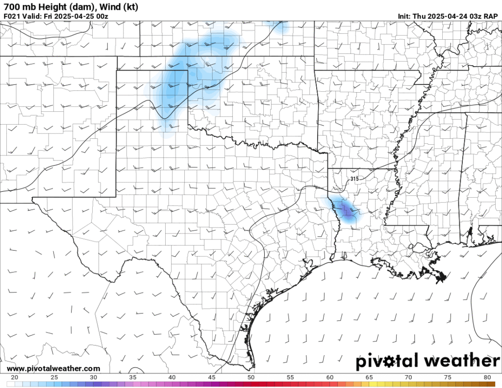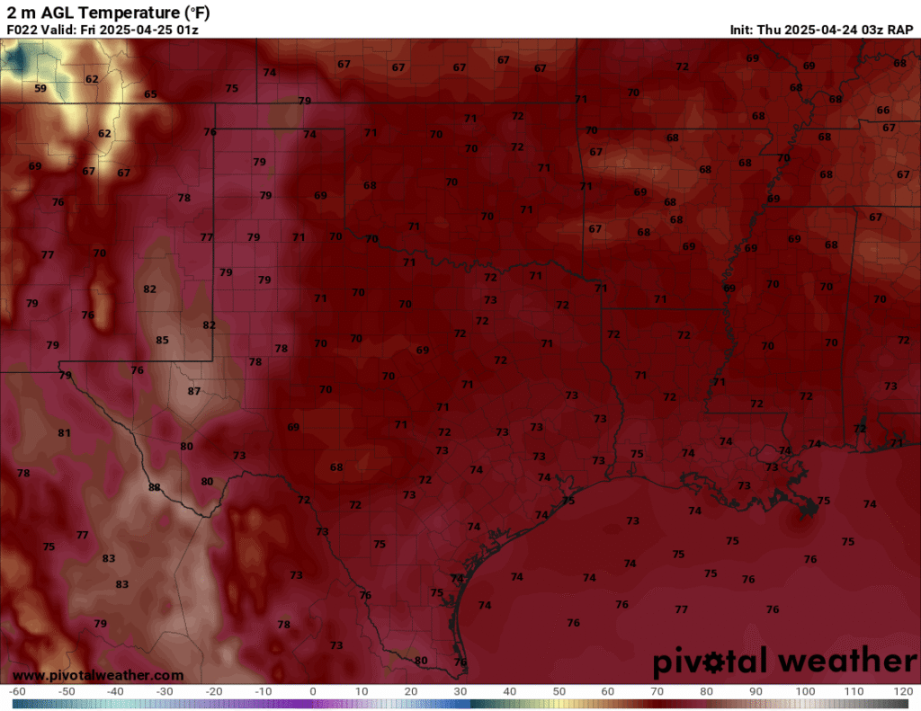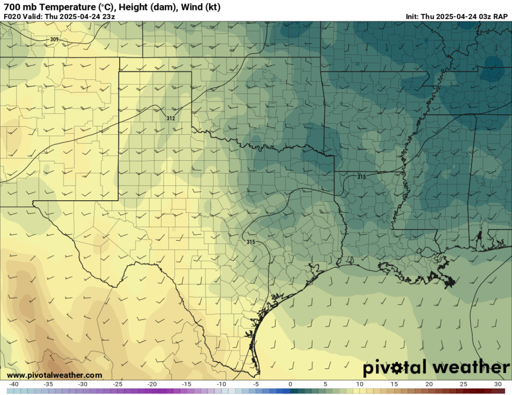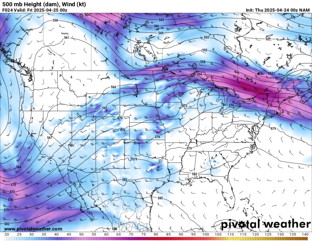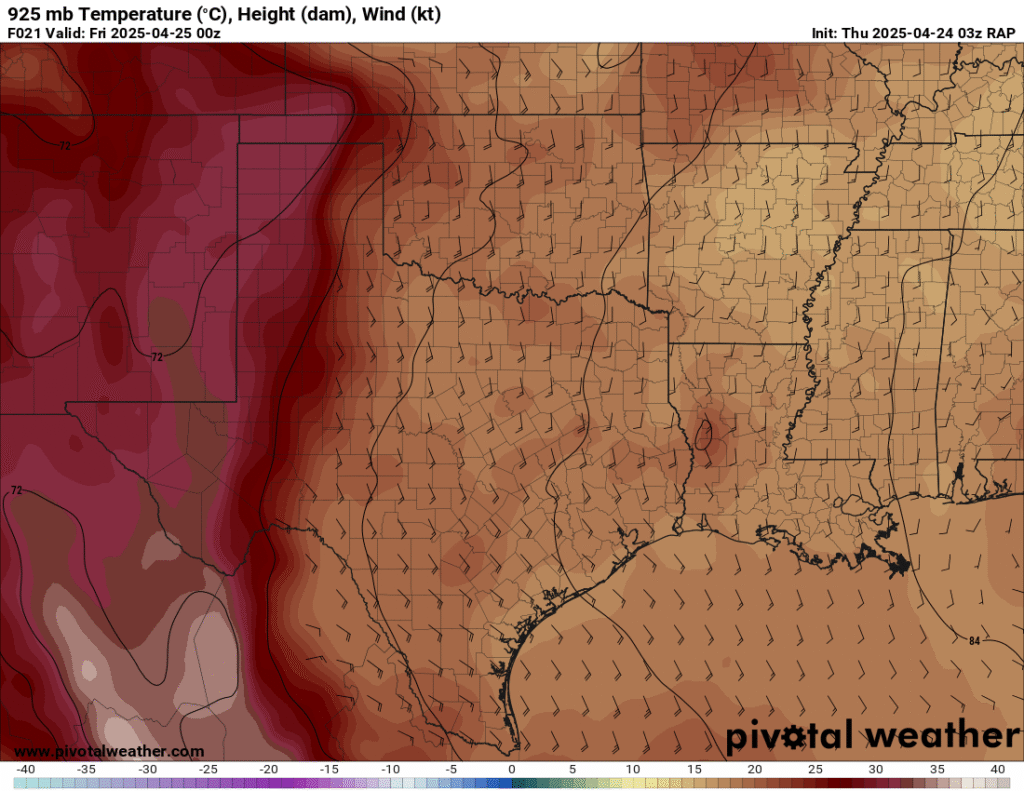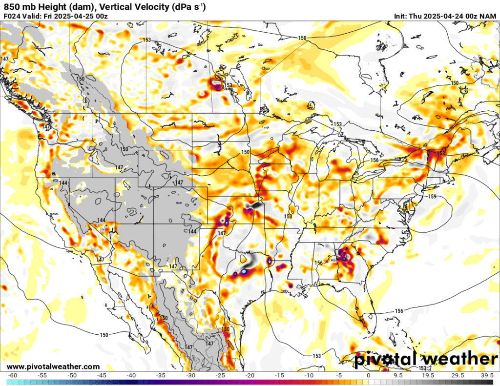 00Z NAM – 24 hour forecast for 7pm CDT April 24, 2025