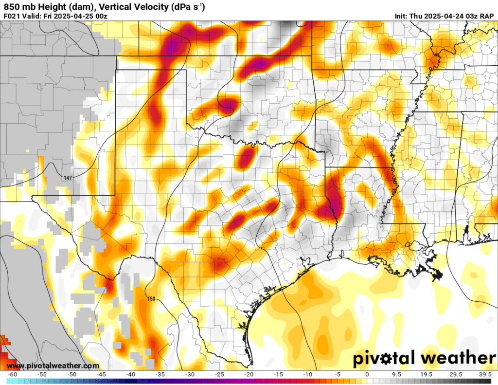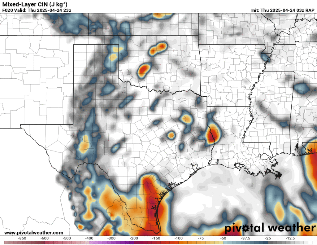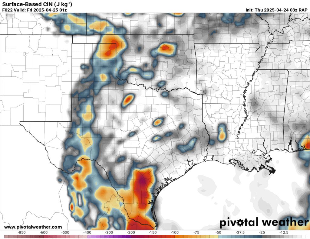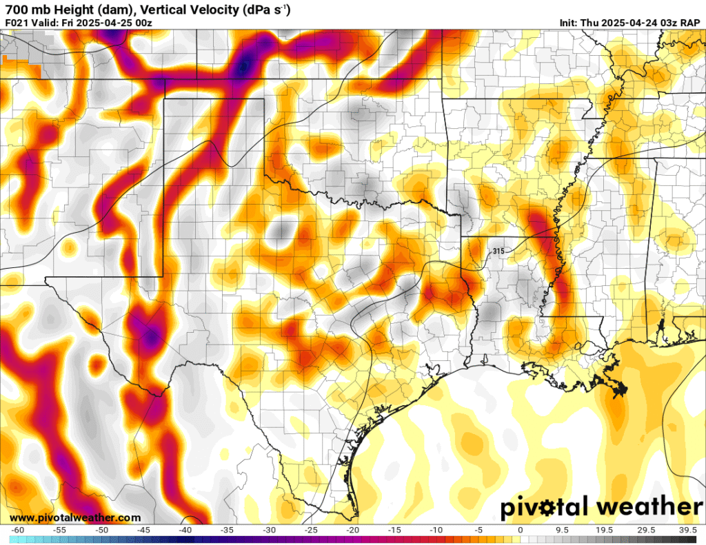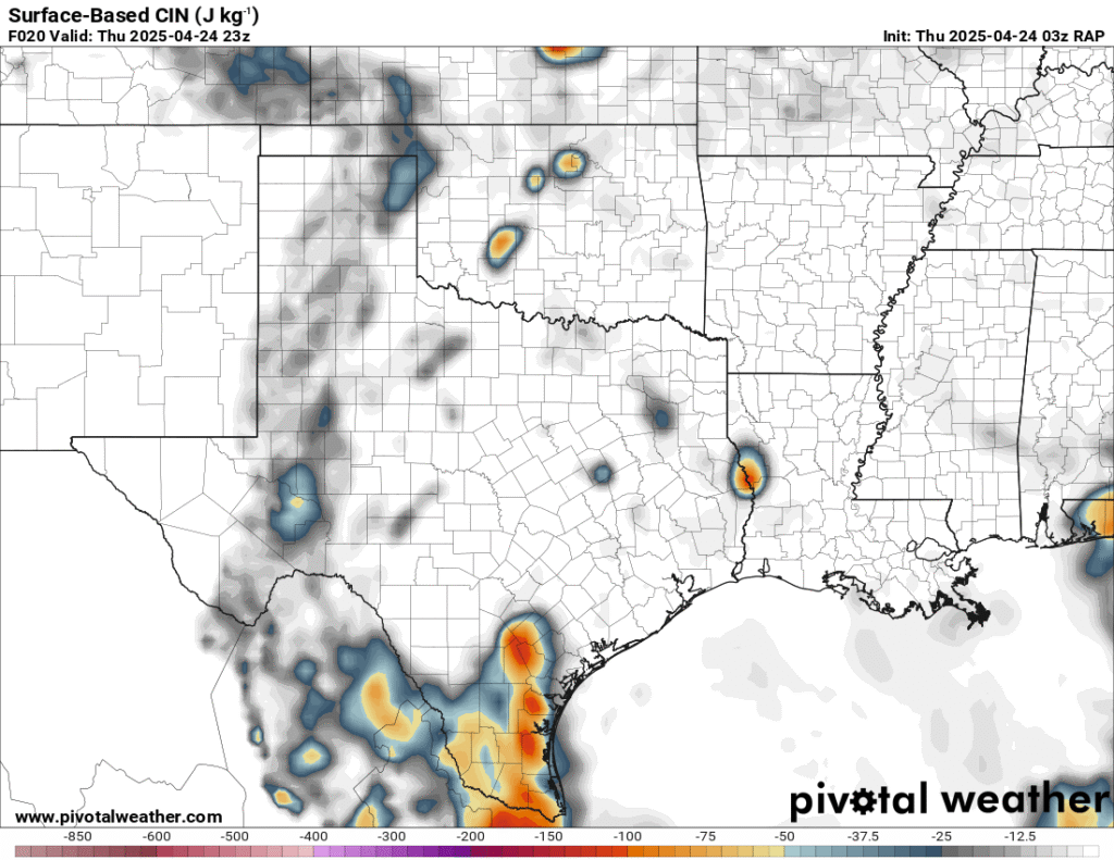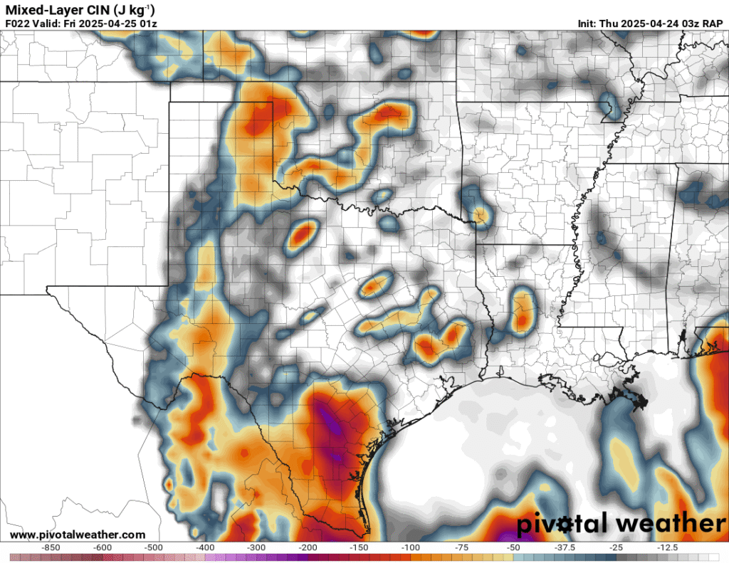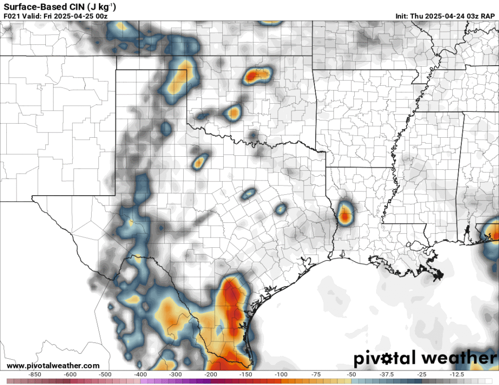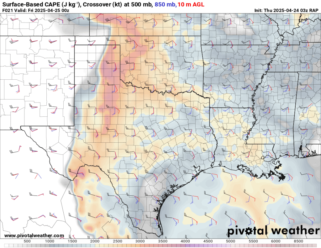 00Z NAM – 24 hour forecast for 7pm CDT April 24, 2025