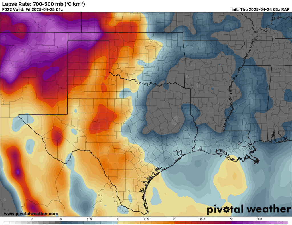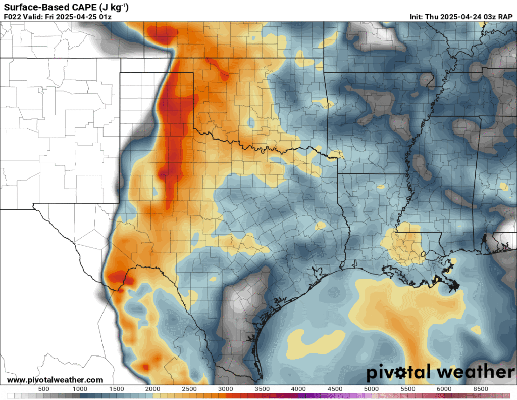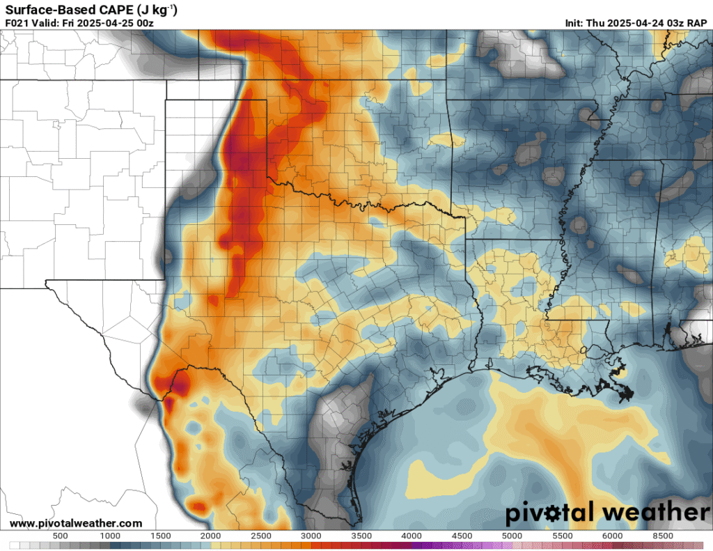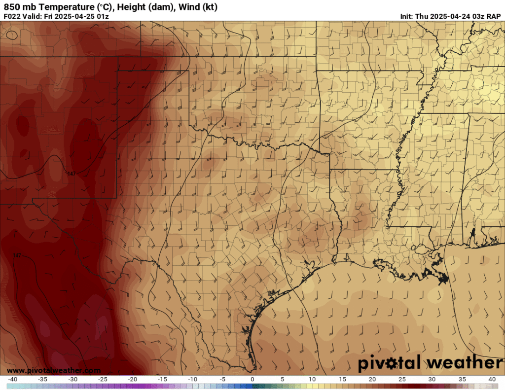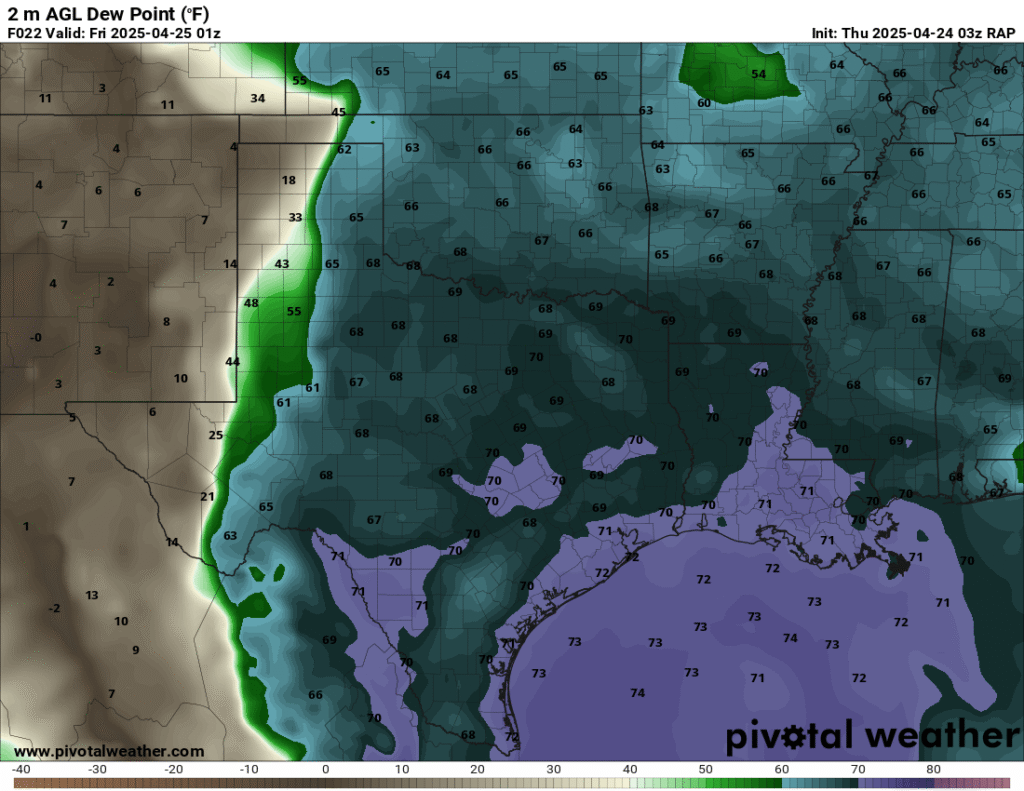 The 03Z RAP showing a similar situation with deep moisture making it to the caprock, with a real stout dryline in the northern Texas panhandle.