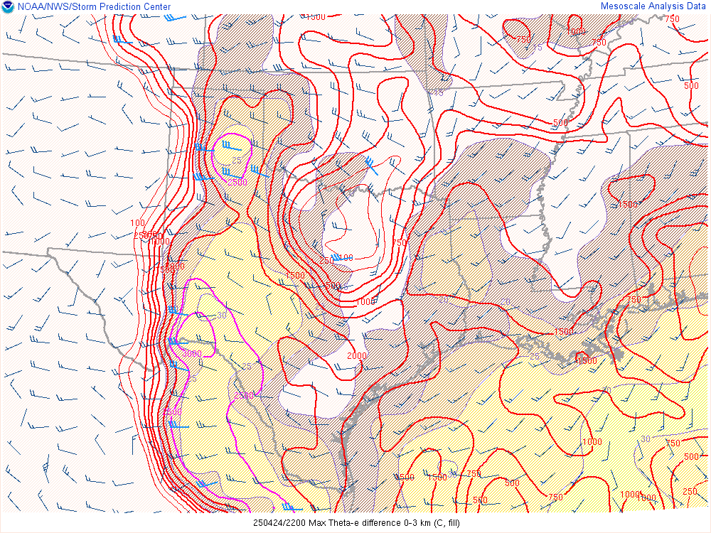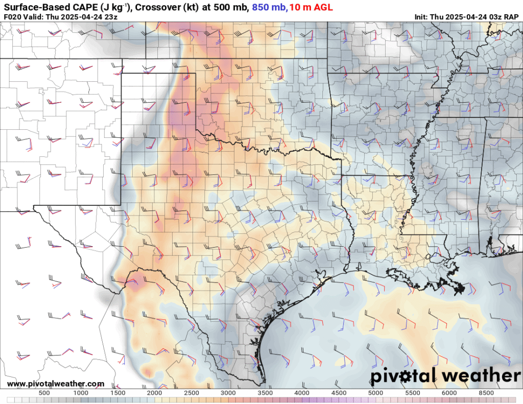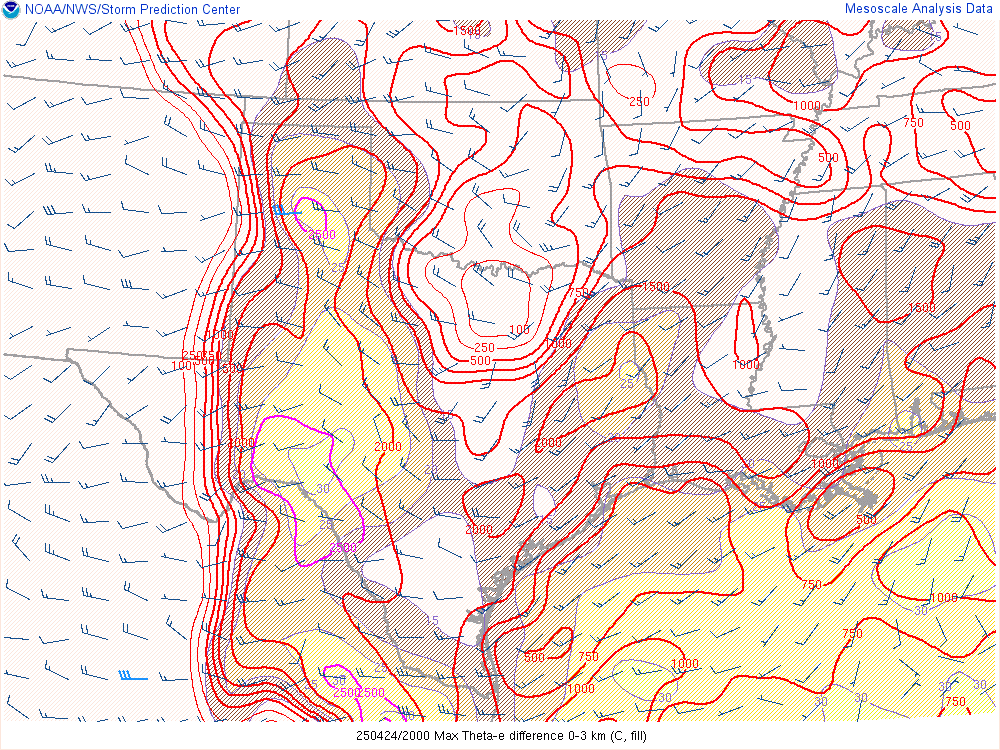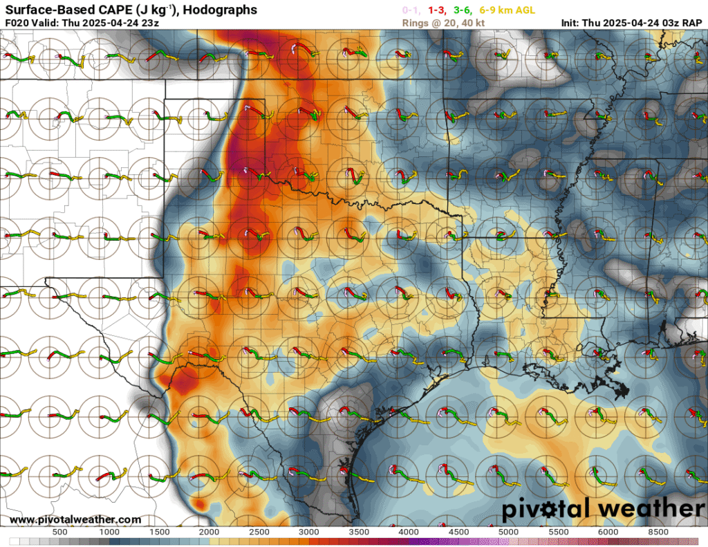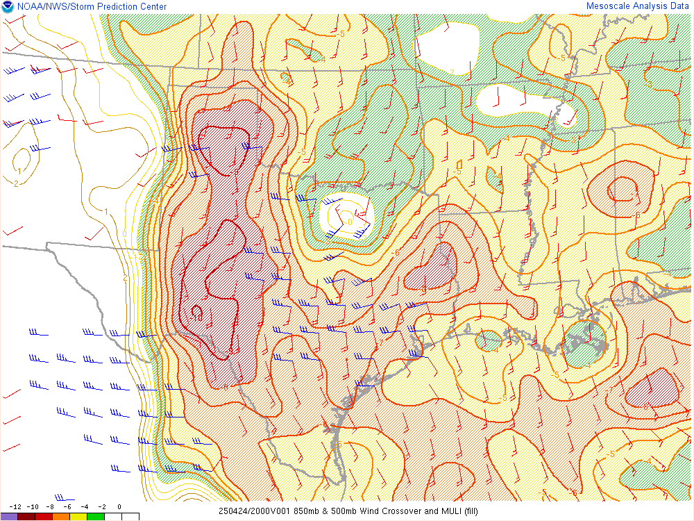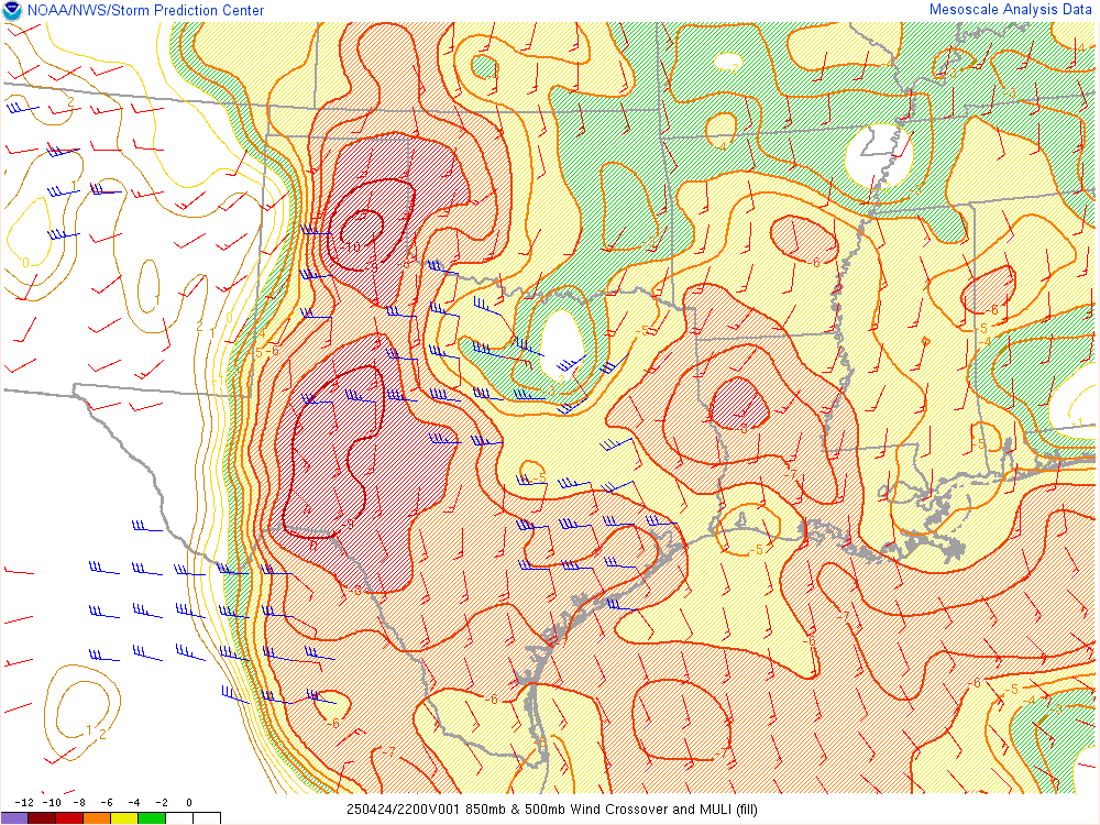 The most important 00Z RAOB was from Amarillo, showing a very good thermal profile and reasonably most environment.