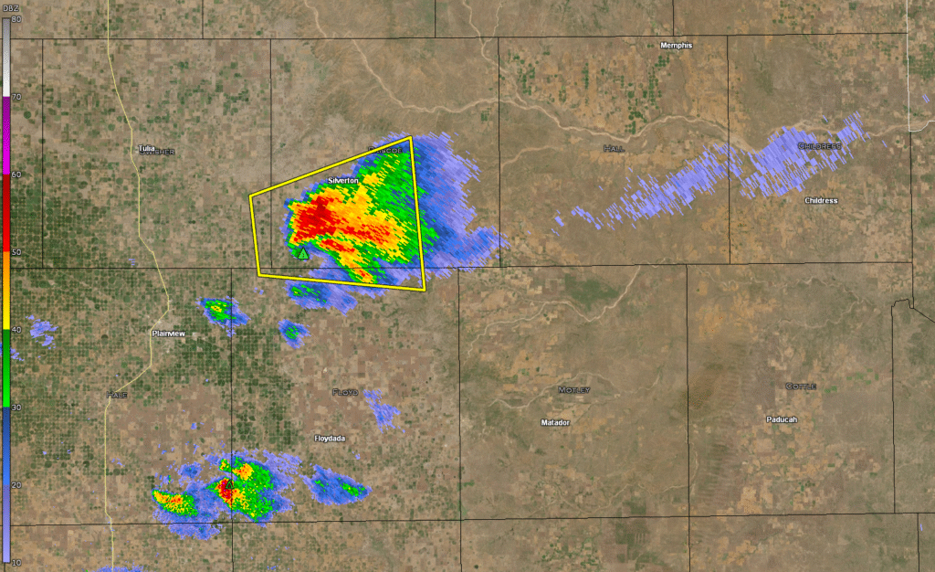 As we were watching the tornado, it would become apparent we needed to move if we did not want to get hailed on. It was not my car, so we retreated back to 70 and south to Matador. From there we headed west on US62, trying to get to Farm Road 28 before the hail came over the road. Unfortunately we would not get that far before it was obvious we would need to turn back around. There was a severe warned storm near Floydada that was being ingested into the storm West of Matador. The tornado had lifted/become enshrouded in rain by this point, so we retreated to Matador and then continued south again on highway 70.