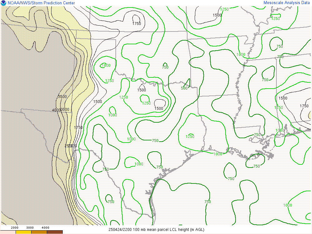 As you can tell, the cluster of storms blowing up north of Plainview was starting around 4:30 pm. The outflow boundary continued moving south and west, however, moisture was feeding up to the west of the modified air.