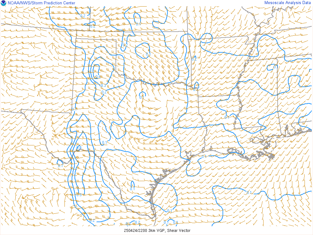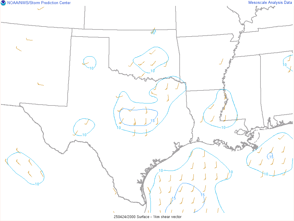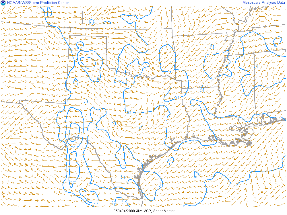 The early afternoon visible satellite loop showed a southerly sliding outflow boundary extending from near Childress over to Happy and Hereford. North of it, stable air from the storms in the morning. South of it remained the unstable/moist air from the Gulf of America.