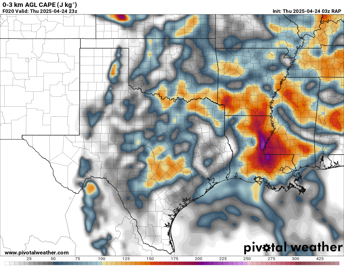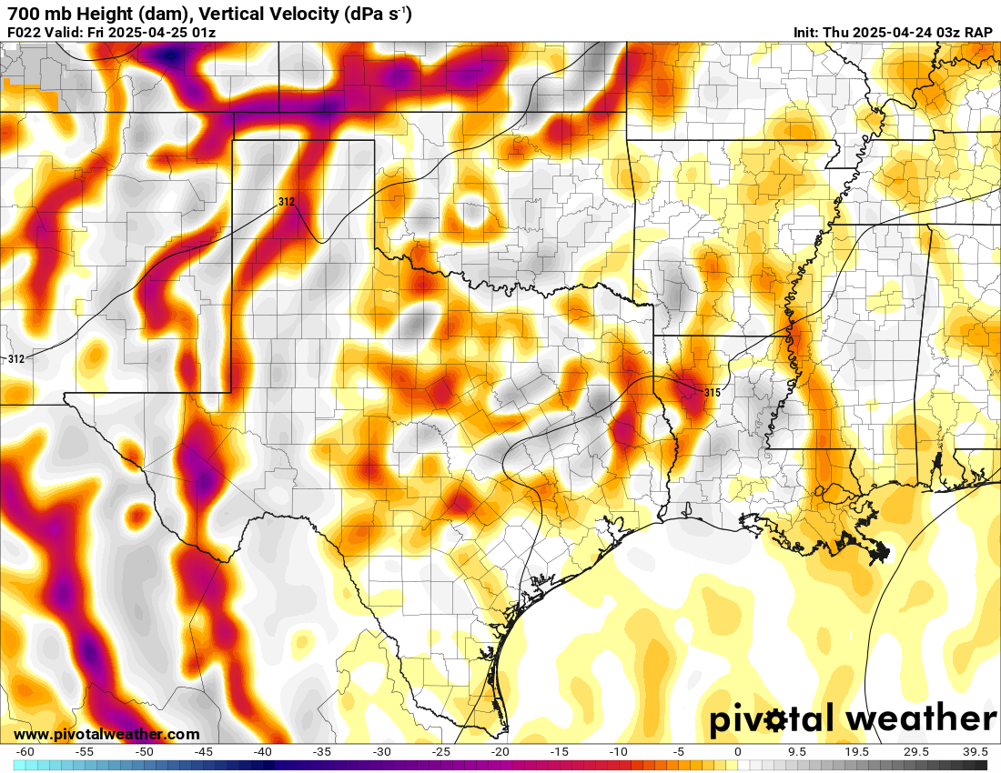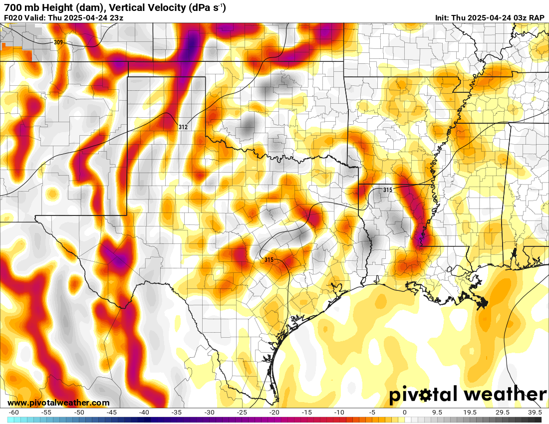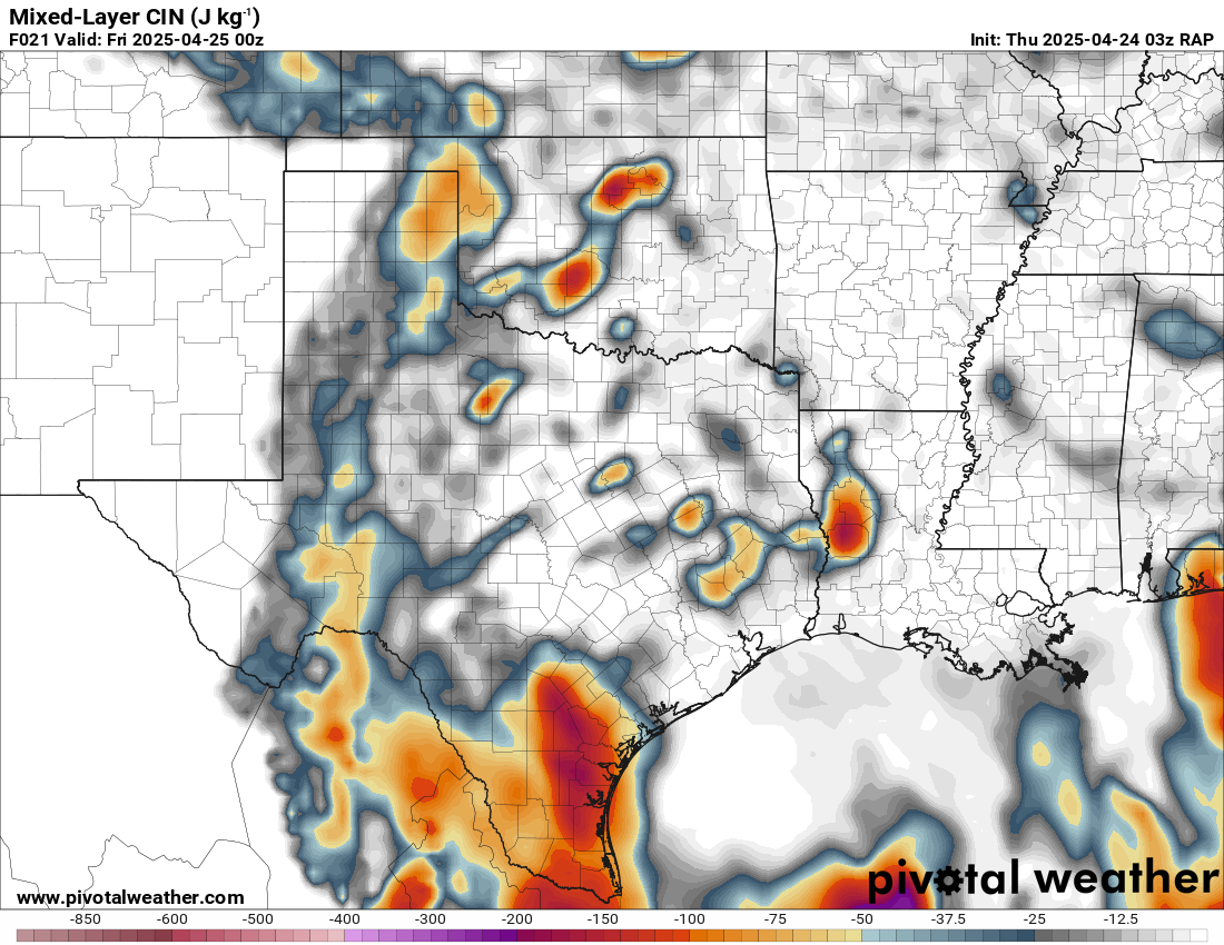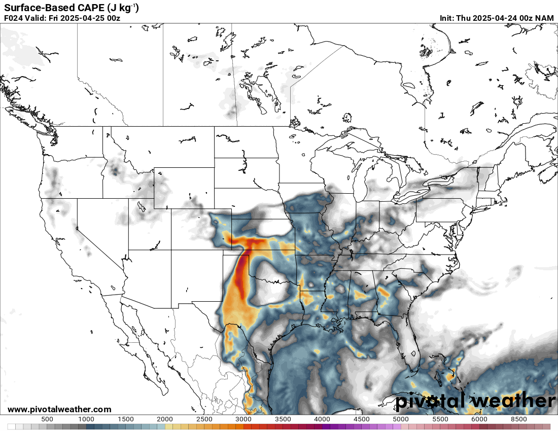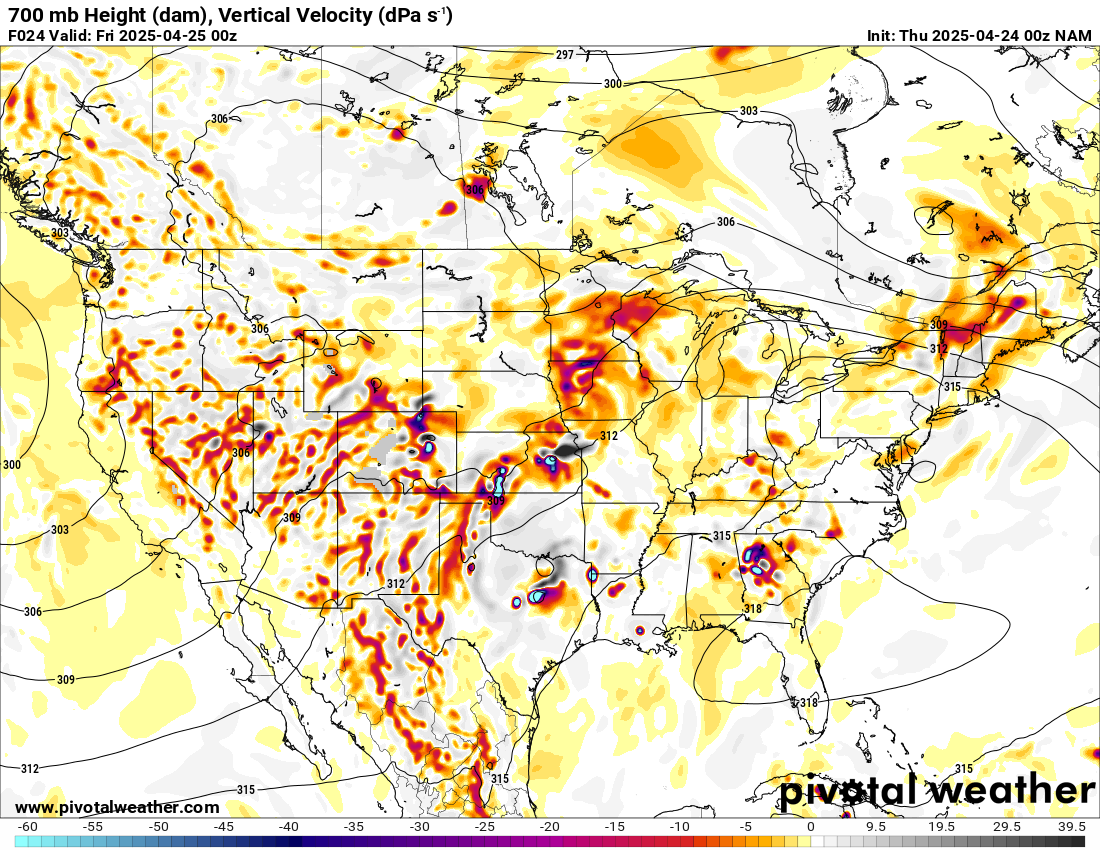 00Z NAM – 24 hour forecast for 7pm CDT April 24, 2025