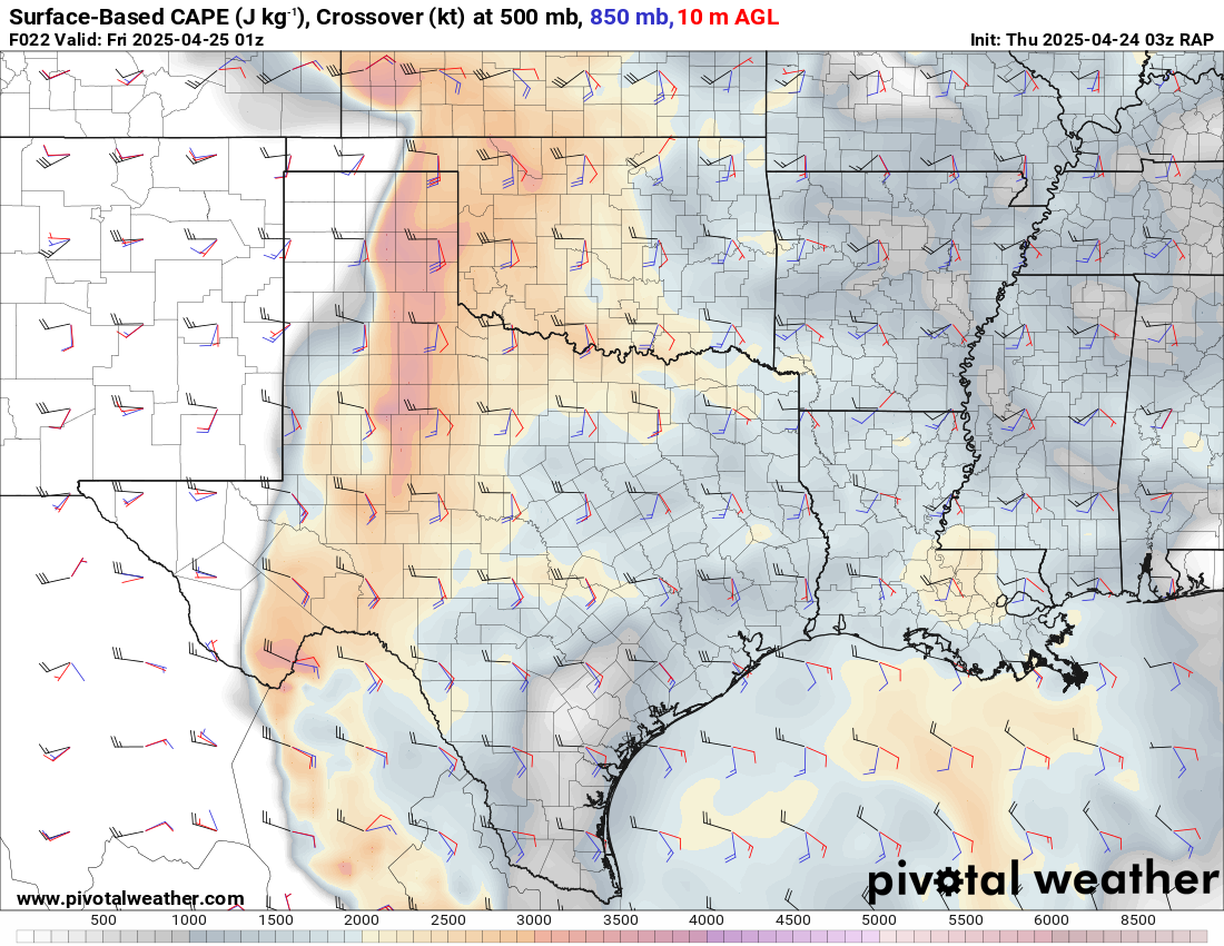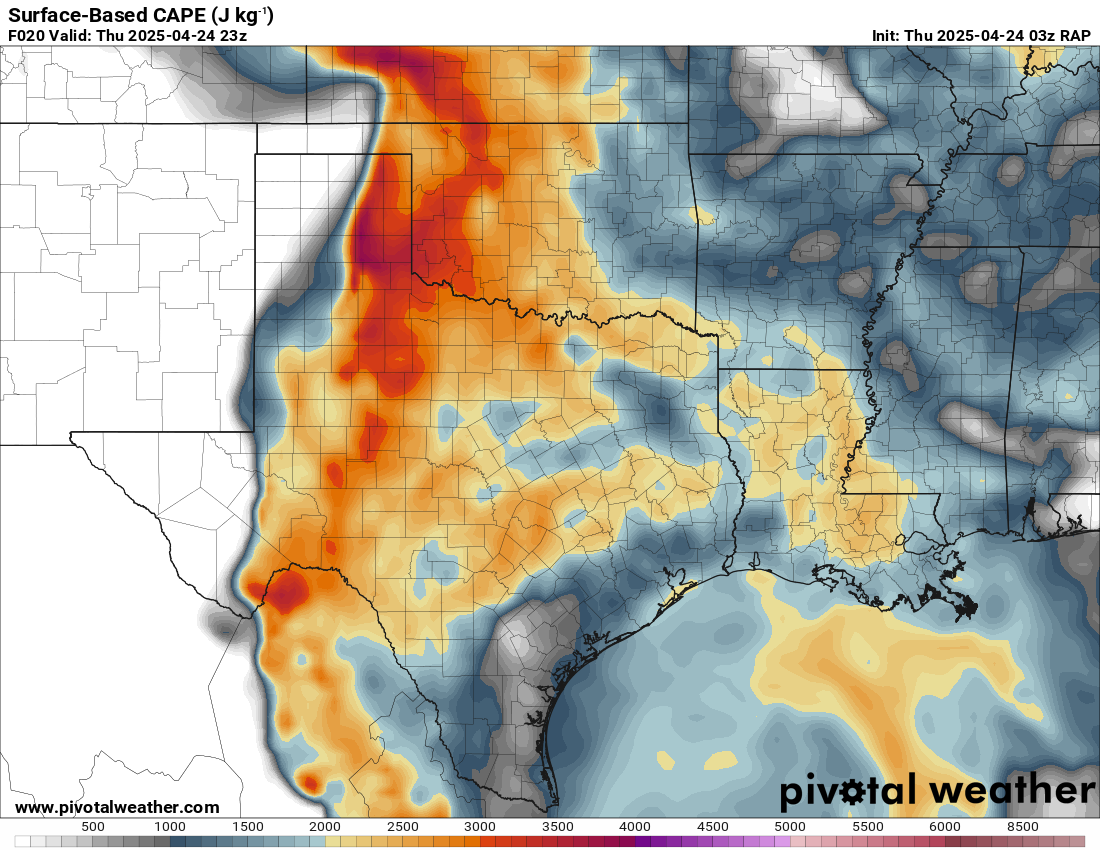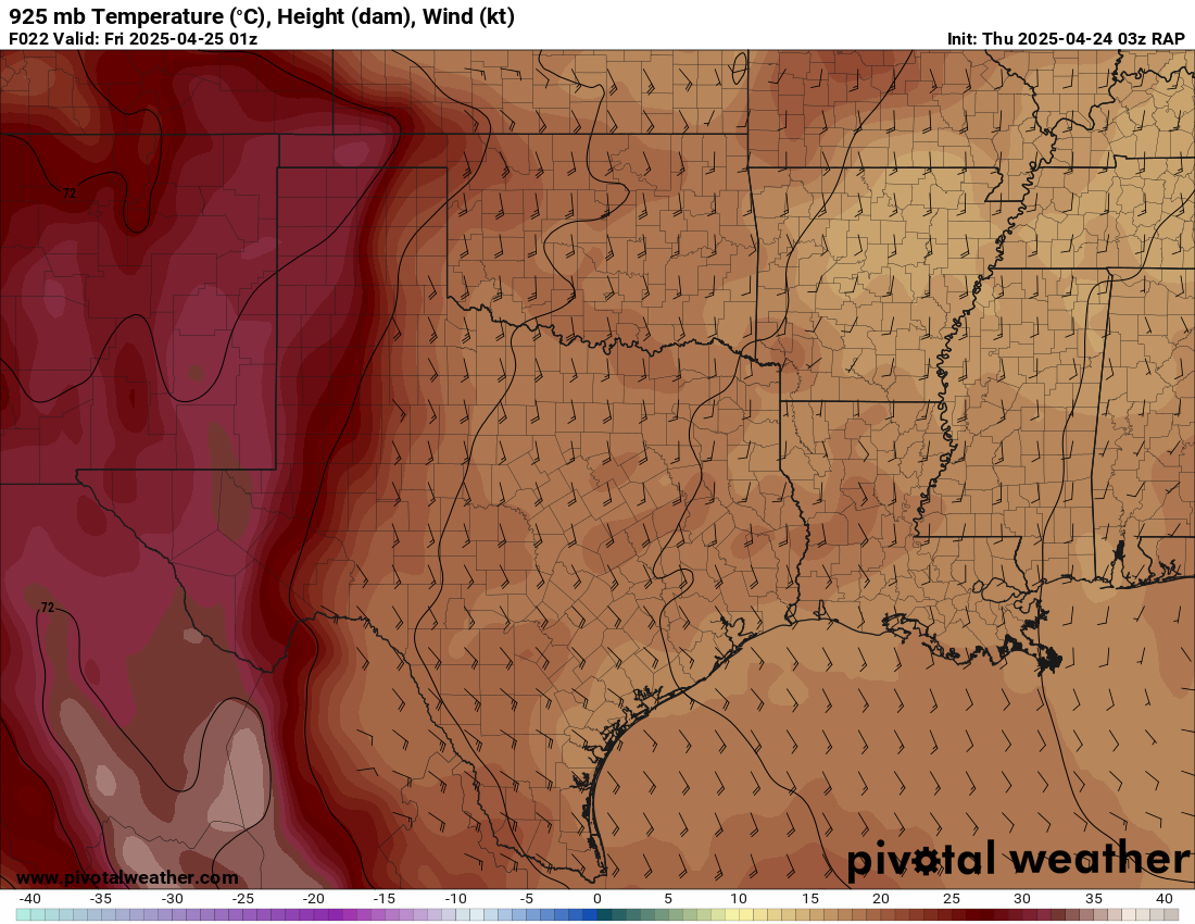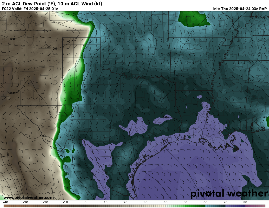 The 03Z RAP showing a similar situation with deep moisture making it to the caprock, with a real stout dryline in the northern Texas panhandle.