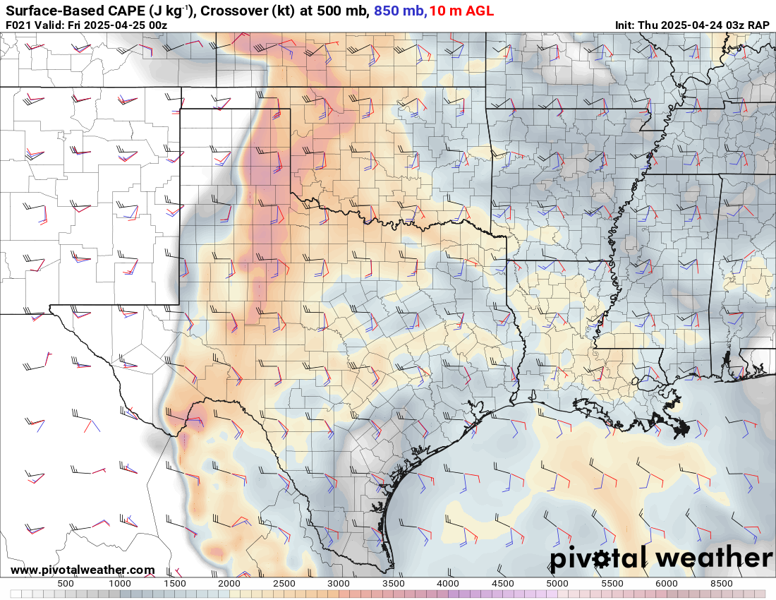 The most important 00Z RAOB was from Amarillo, showing a very good thermal profile and reasonably most environment.
