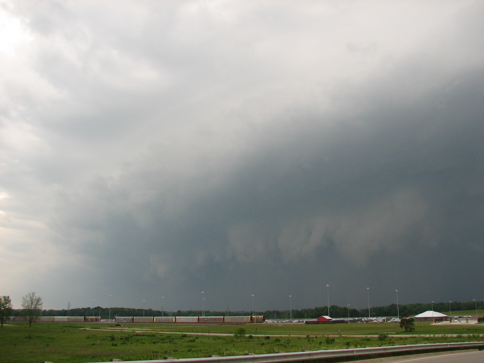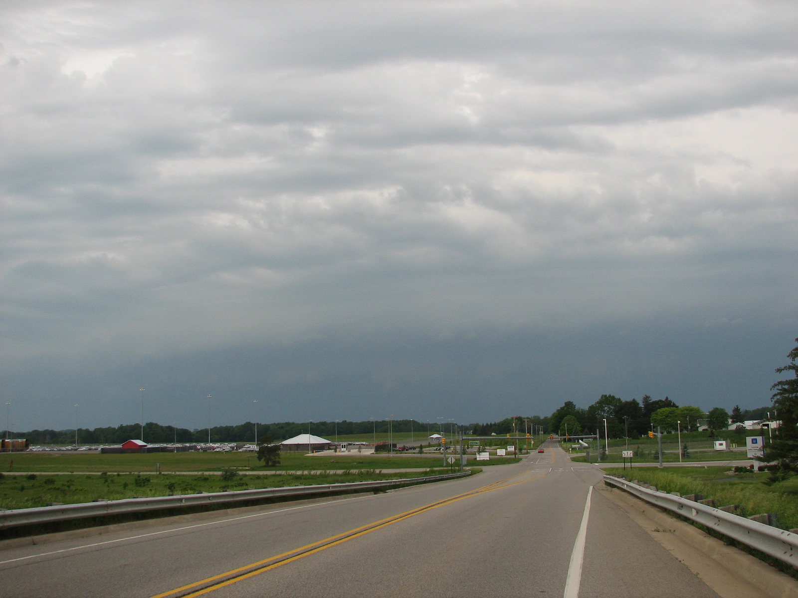 City of Lansing Emergency Manager Atkins asked me to go run by some areas on the north side and send back some live video prior to the new storms arriving for their damage assessment. I did that then headed out to Delta Township in West Lansing. I was going to set up on the Mt. Hope Highway bridge, but trees and narrowness of the bridge made me reconsider. I settled for the bridge over I-69 on Davis Highway near the new GM plant and setup my camera. I did a time lapse as the shelf cloud approached and took quite a few pictures.