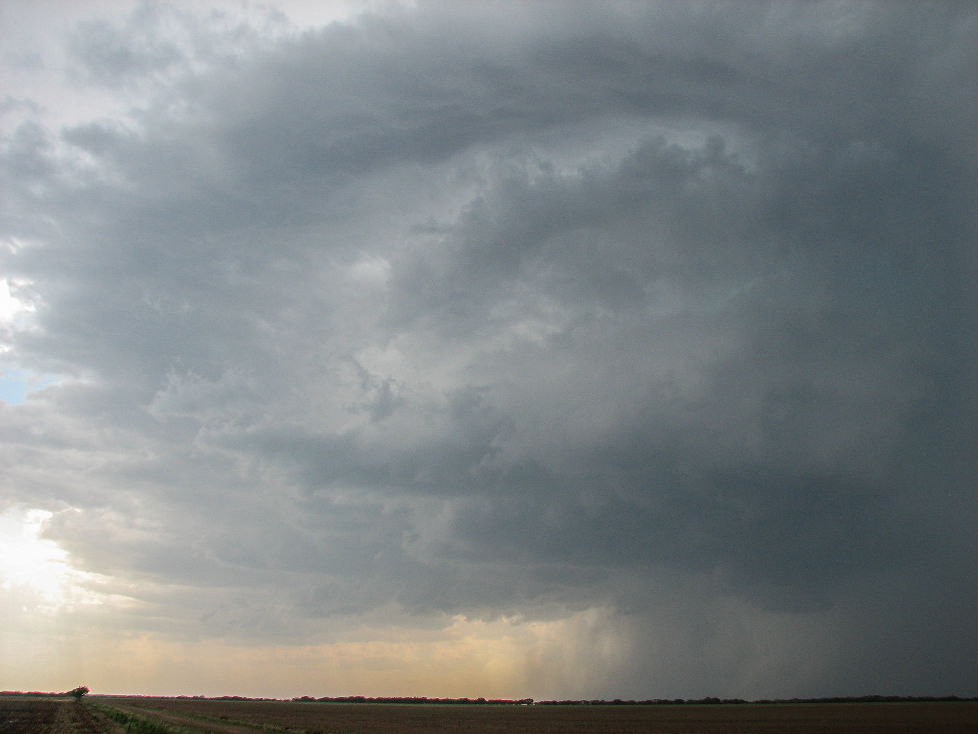 We punched south of Haskell, towards Stamford and observed the wall cloud and funnel cloud for quite awhile before hail started to fall. I got some decent pictures of the structure, and some RFD winds. We had to move south again, and flipped around into the opposing traffic lanes before observing a dust swirl under the wall cloud/funnel cloud previously mentioned.
