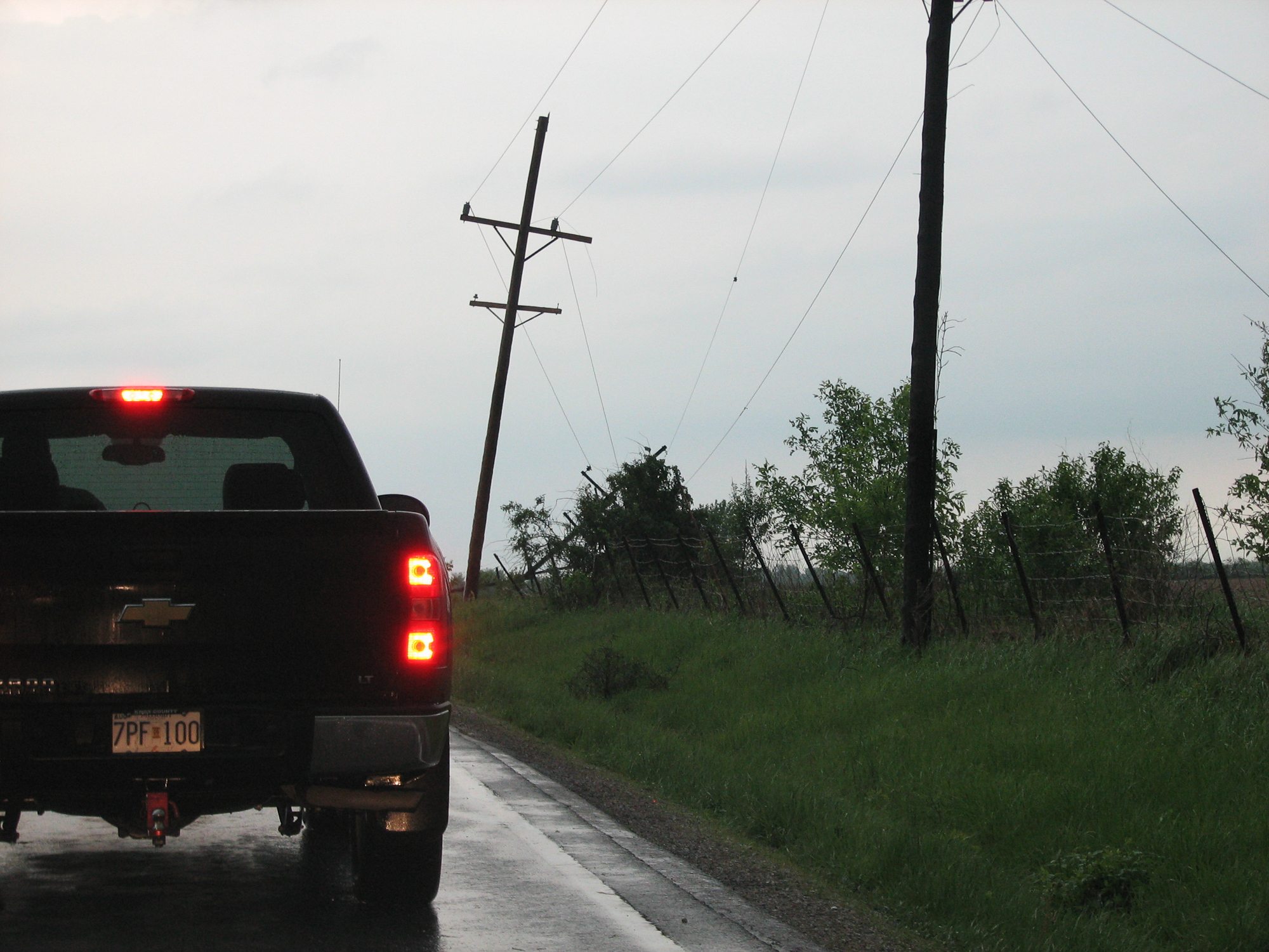 We went about 10-15 miles east before giving up on it as it appeared to be pretty much outflow and becoming more linear at that point. Scott and I decided to head back west and check out the damage.
