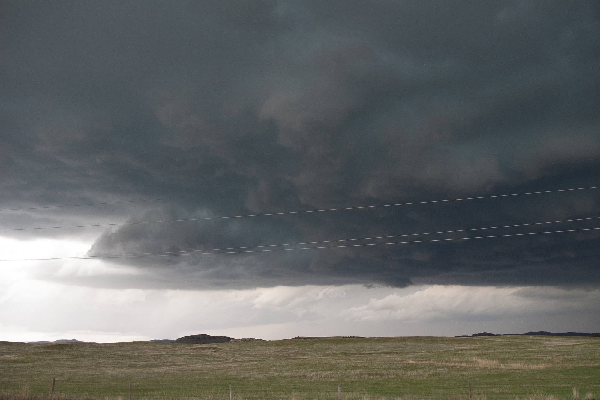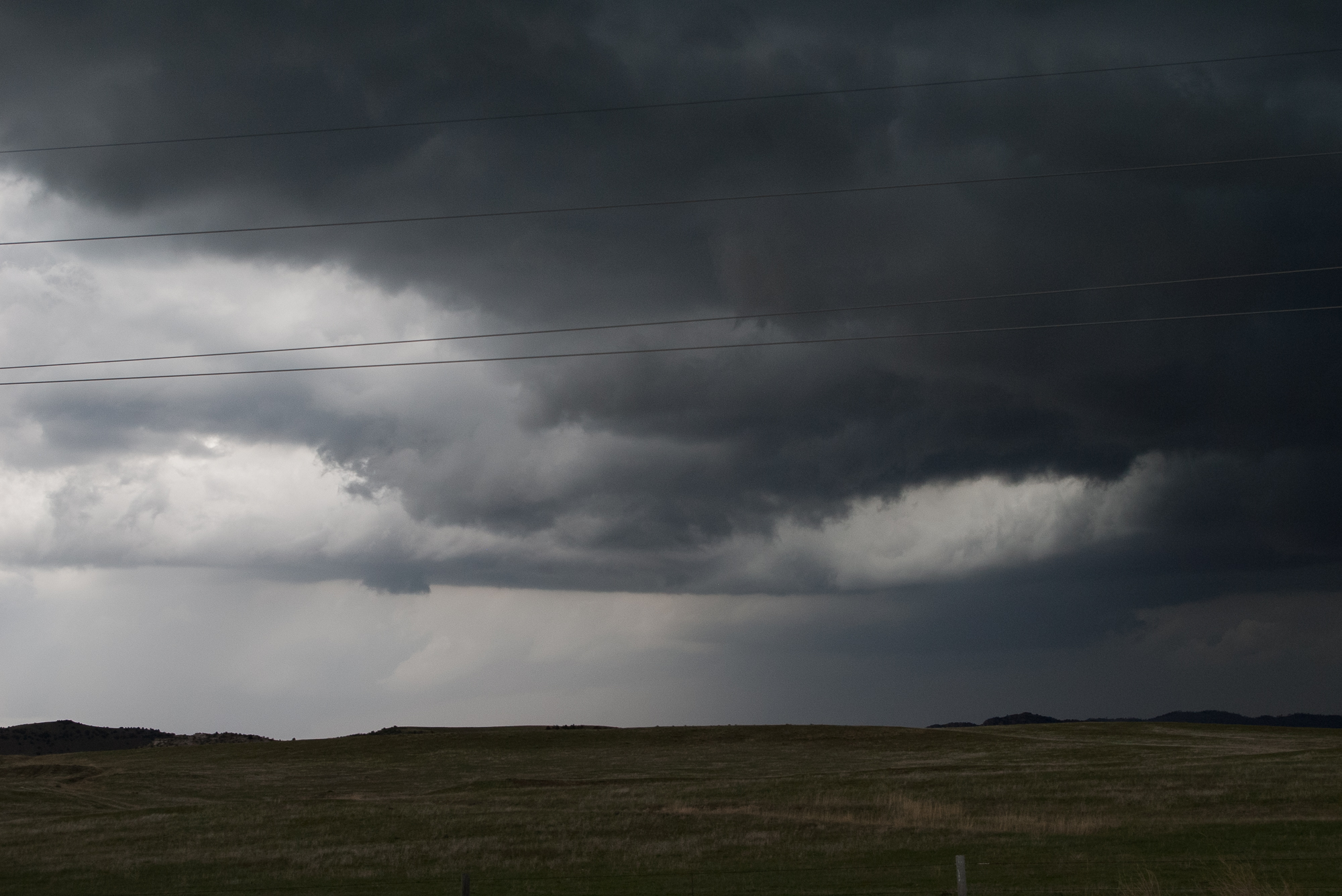 We finally got onto the cell west of Torrington. It had amazing structure, but never seemed to be able to get it done. We ran into Skip and Scott alongside the road. My camera blew over on the tripod, but seemed to still work even after taking a spill.