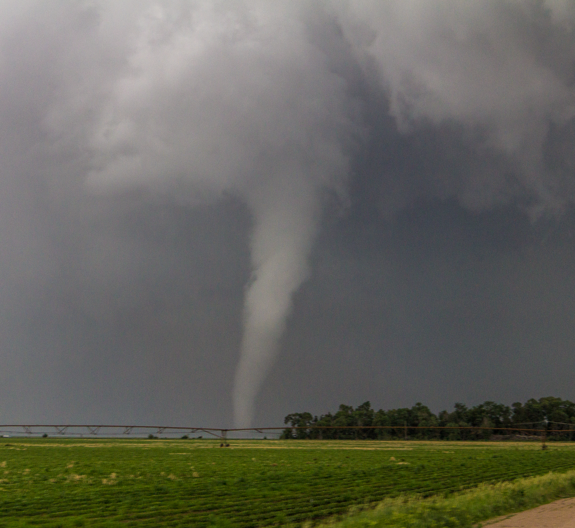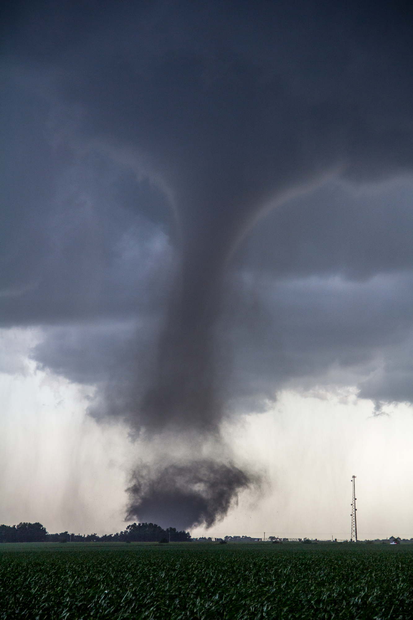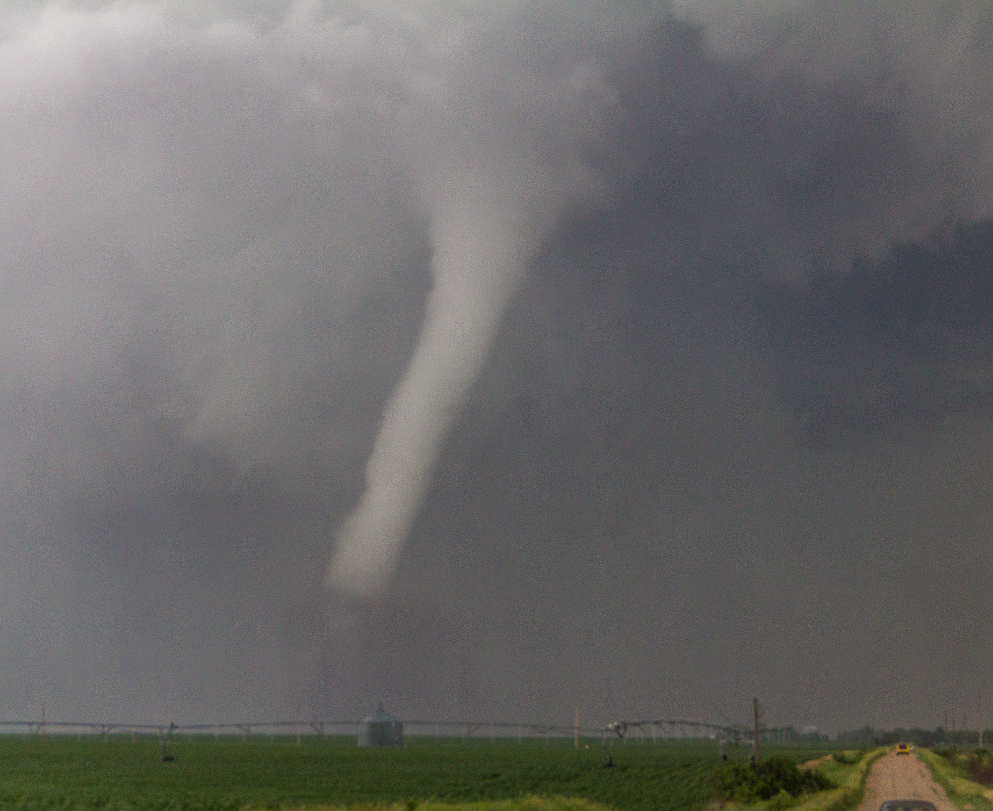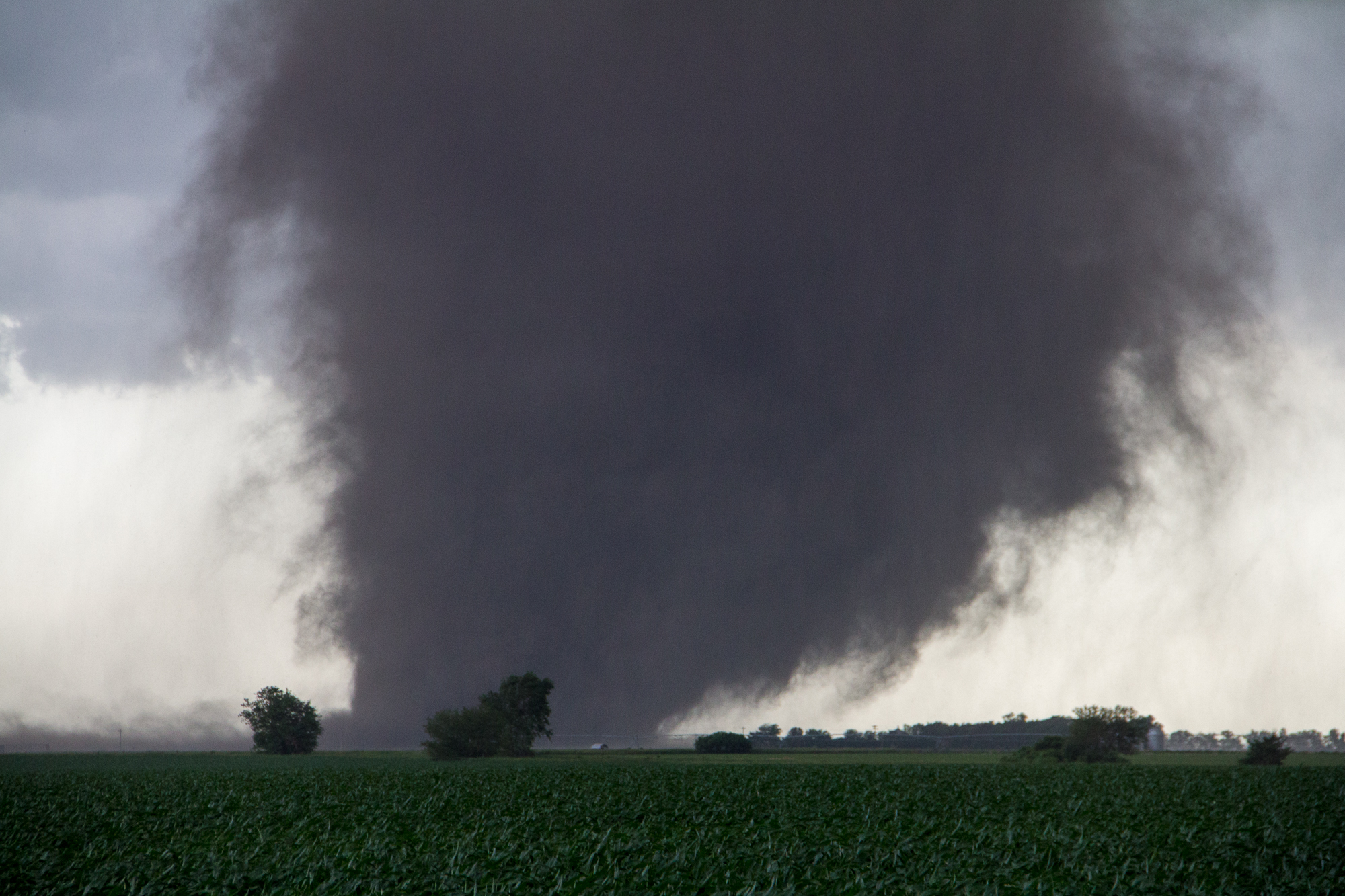 Eventually the third tornado formed, and became a fat stovepipe. This was the Osceola Nebraska Tornado. Our view was not the best, however, we were able to get a decently close view as it crossed the road about a mile north of us.