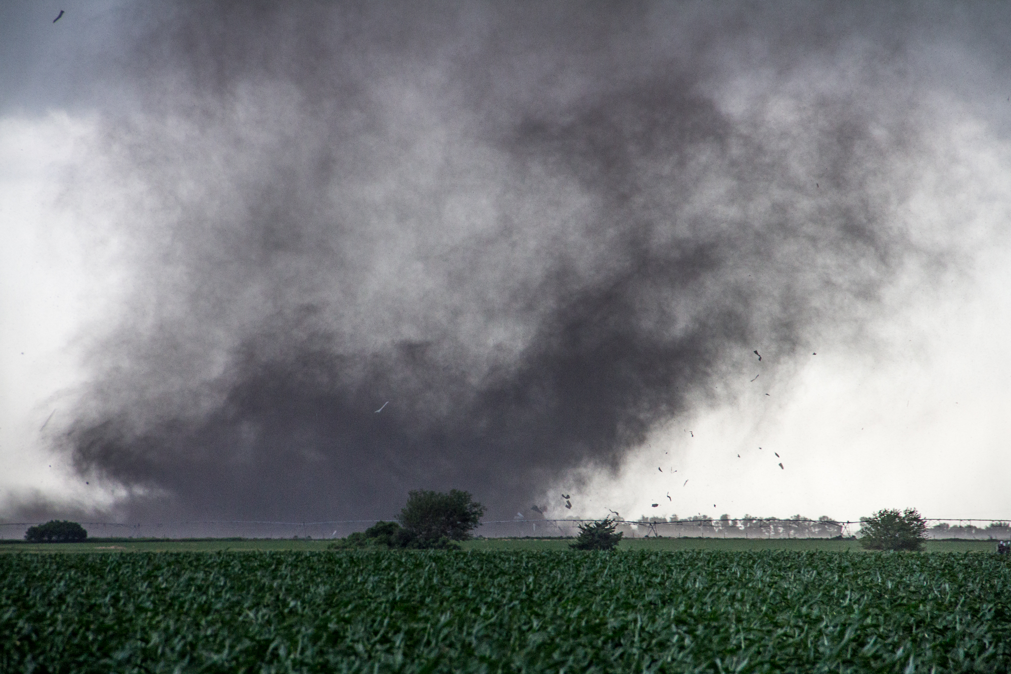 We stair stepped on the great gridded gravel roads for quite a few miles, staying east of the damage path and keeping up with the tornado. It was on the ground for probably 15-20 minutes before dissipating with an incredible rope out.