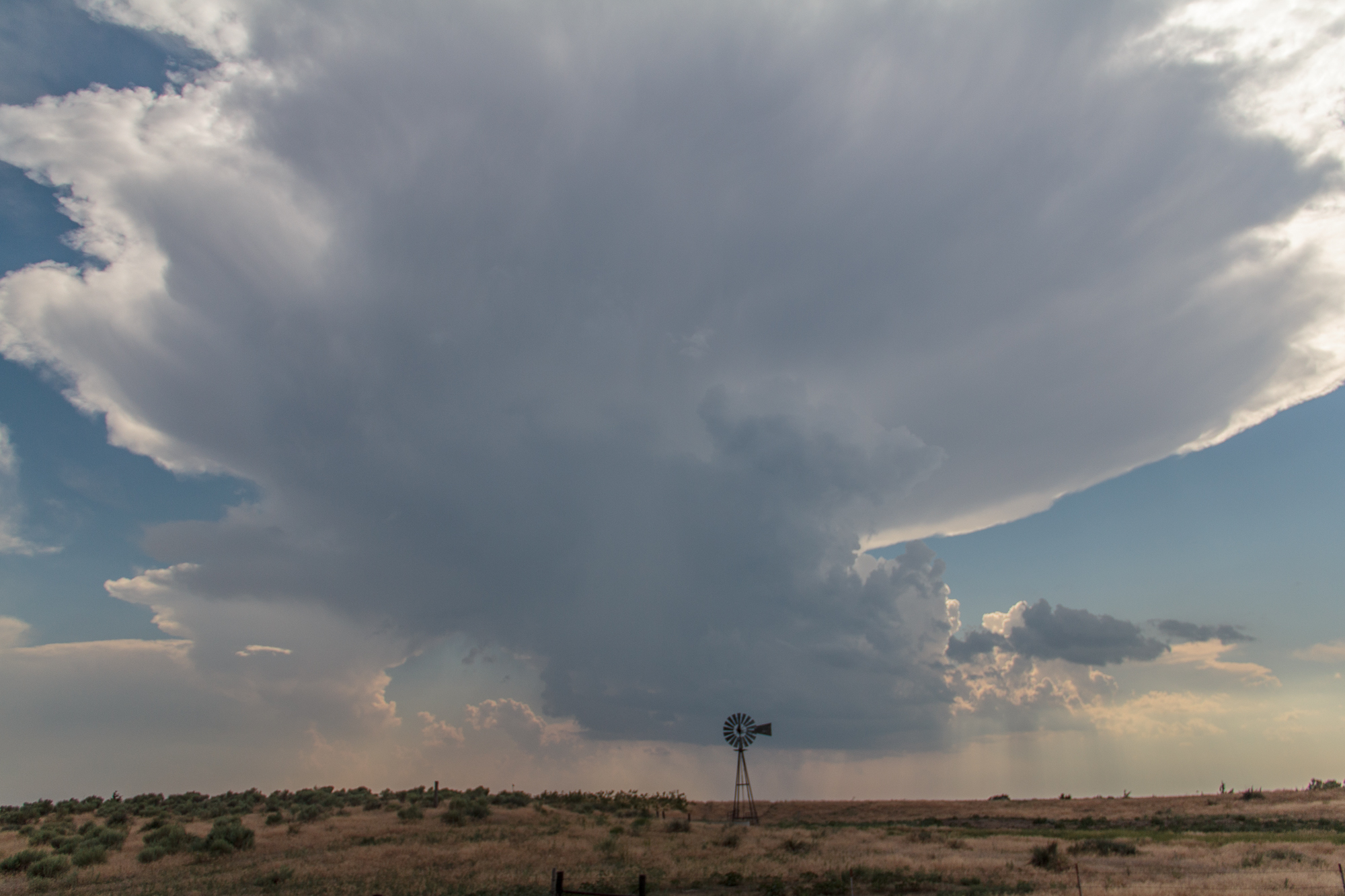 Storms continued to fire further north and finally one blew up just to our west. This seemed to easily be the best storm of the day and even looked somewhat pretty when we first approached it. Unfortunately the storm kind of sat there with the weak upper flow and surface flow died off.