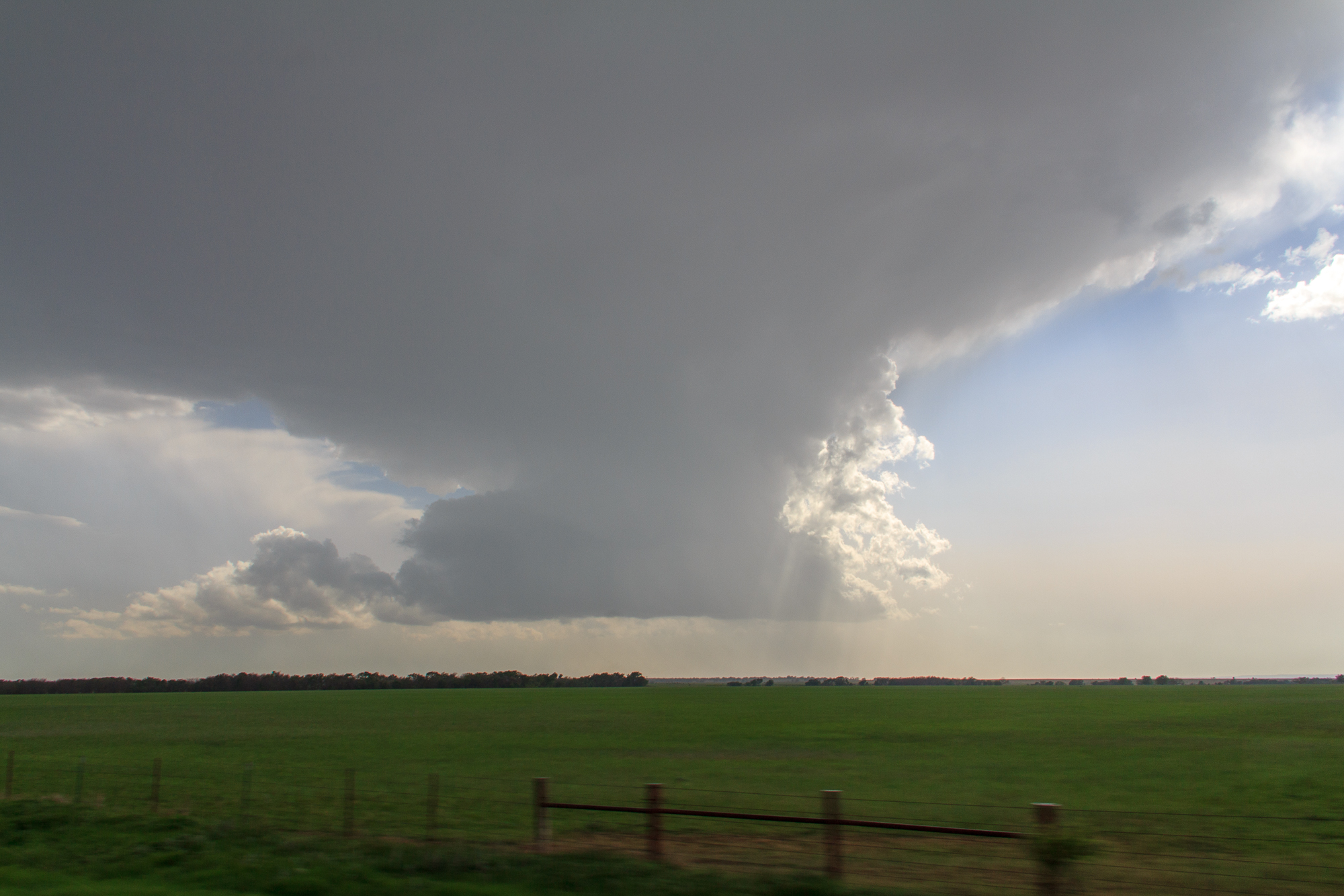 As we approached Ardmore, we headed west on US-70 and dropped south on 81. There was some storms firing in Texas, the first of which we got on near Possum Kingdom Lake. We witnessed a nice elevated funnel and a horseshoe vorticy. The storm was struggling, so we didn’t want to stick with that storm very long. We headed south towards the storm to the west of Stephenville.