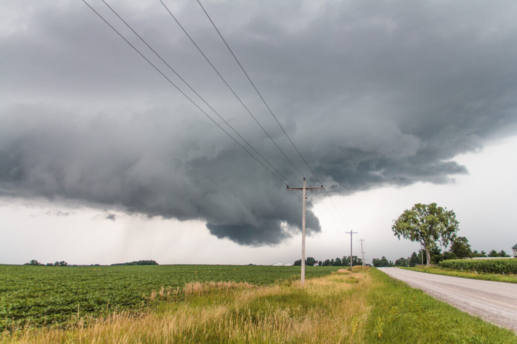 I followed the storm all the way through Iowa City to the east of town before driving right under the wall cloud and realizing that it was being undercut by cold air.
