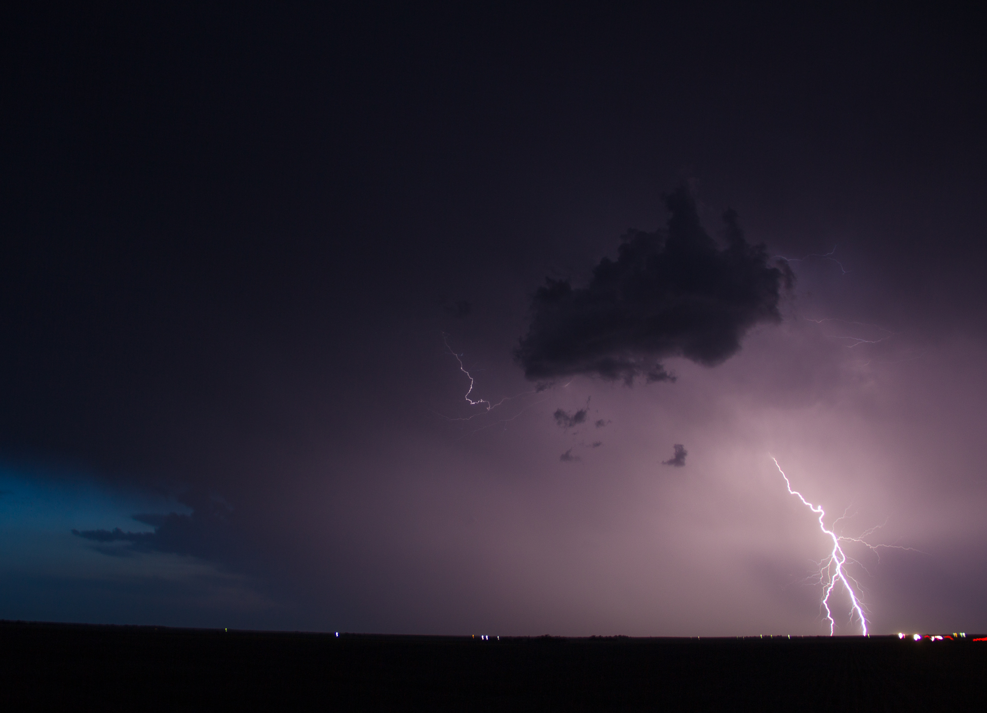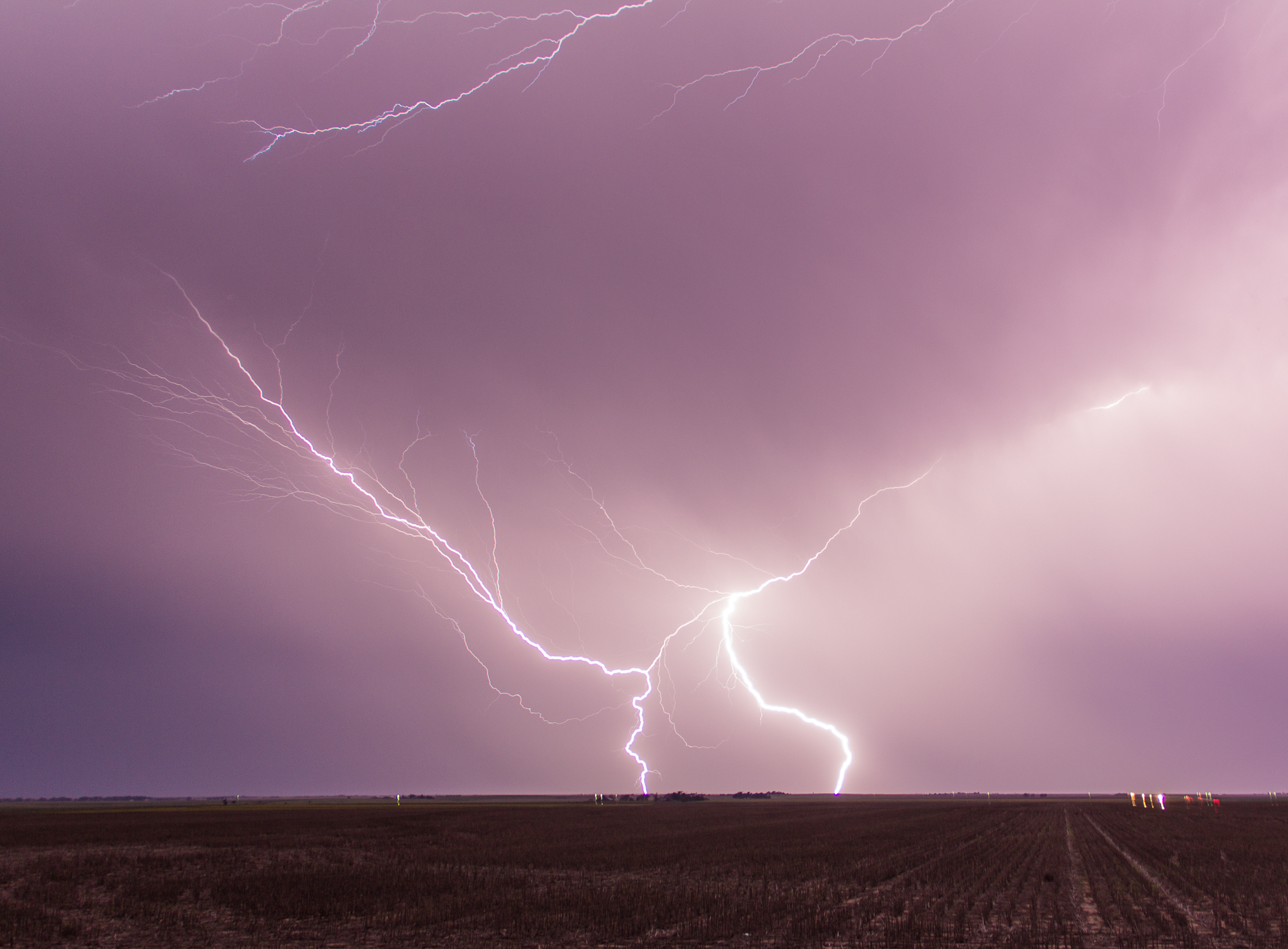 The dryline way to the west lit up and I bailed 90 minutes west to view one of the most spectacular lightning shows I’ve ever seen south of Quinter, KS. Unfortunately I had a melt down of equipment. Already on my backup laptop, I had forgotten my tripods and my trigger release was having issues. So I got a bunch of lightning photos, but they could have been much better had my equipment been working correctly.