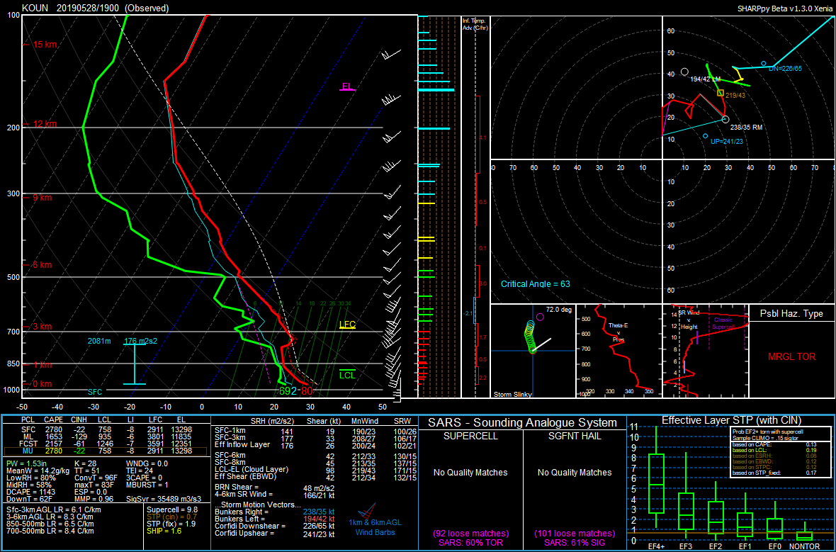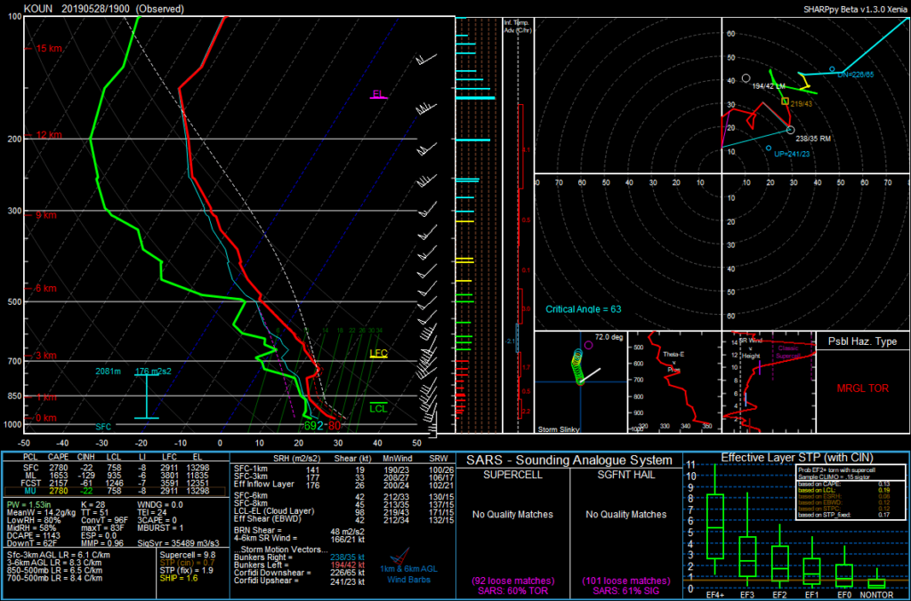 I couldn’t chase but locally on the 28th because of work and a doctors appointment. Before my doctors appointment at 445 storms had already fired along the dryline. I had some concerns with veer-back profiles, showing up on the 17Z and 19Z OUN sounding as well as the VAD profilers at the radar sites.