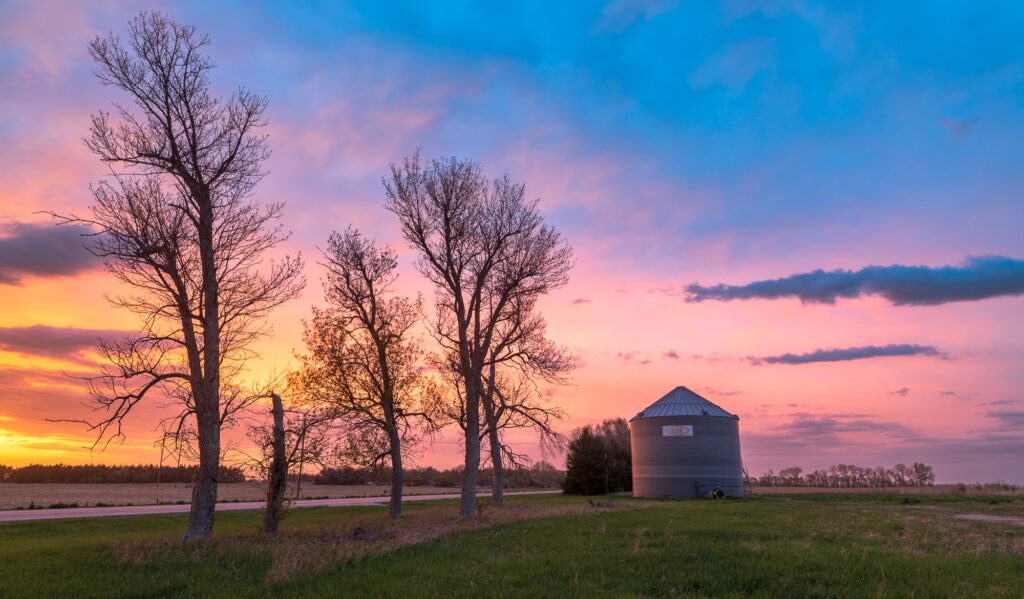 After the line passed me, I decided to begin the journey home. I dropped south through Huron to Mitchell and south into Nebraska near Niobrara. I saw quite a bit of damage along the way, including chicken coupes with missing roofs, grain bins collapsed, an overturned semi and road signs blown down.