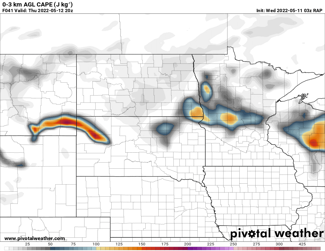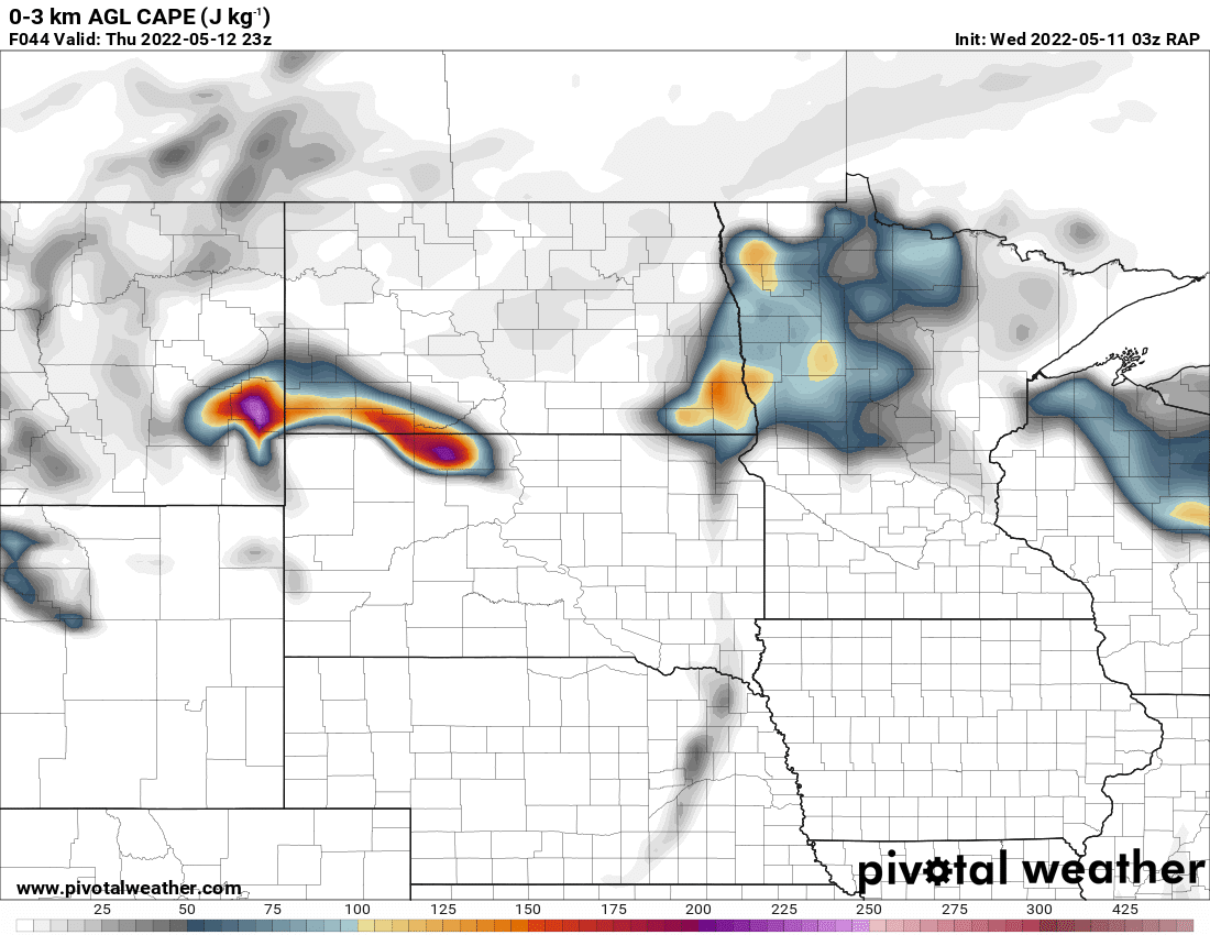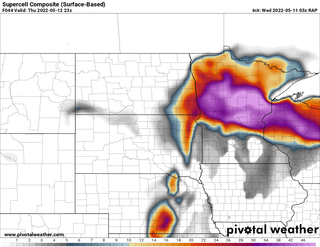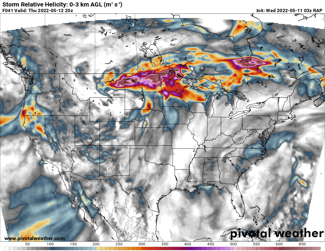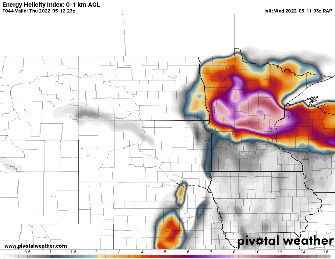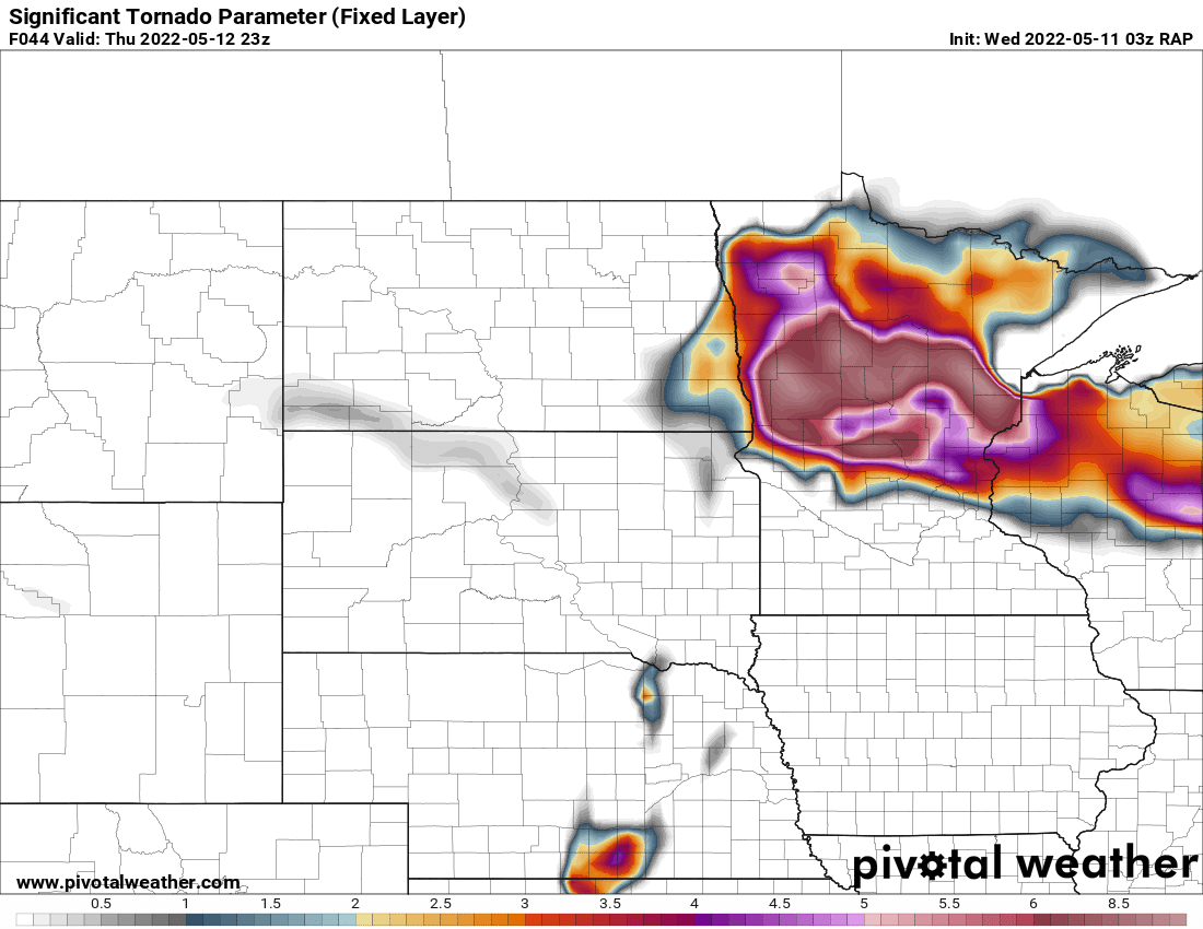 Complex forecast with a strong and highly amplified trough moving out from the Rockies. Storm mode would likely be linear pretty quickly, but the environment adjacent to the warm front/Triple point in South Dakota would be absolutely primed. If a discrete supercell could go up in that environment, it would be a prolific tornado producer.