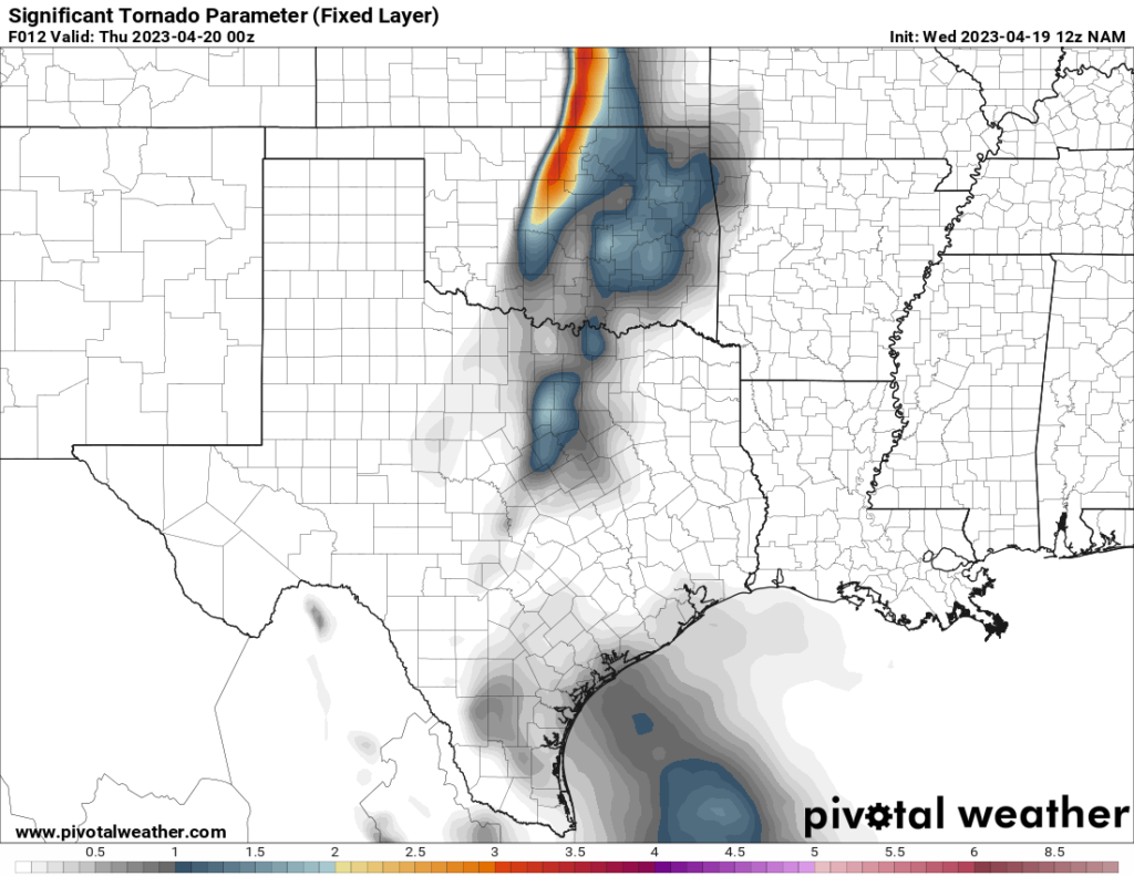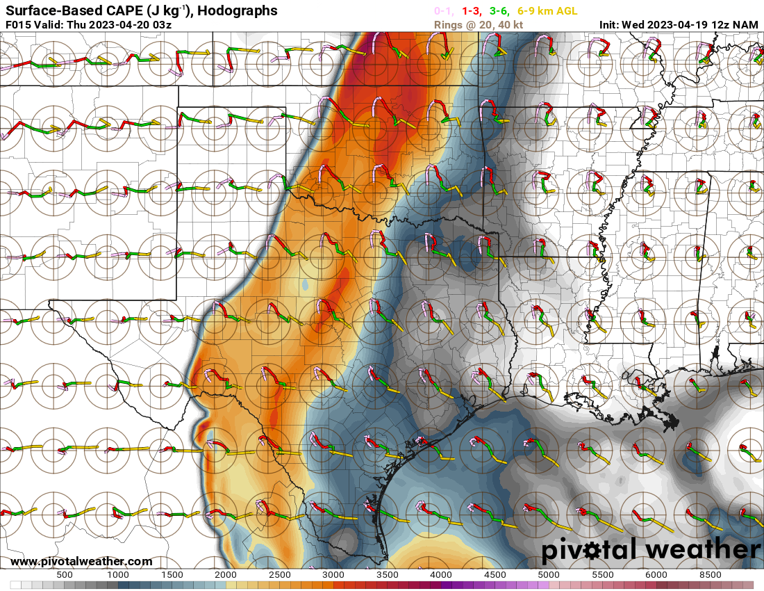 I woke up and took a look at the 12z NAM. A southwest/northeast oriented Dryline would be present with strong to extreme instability just east over the I-35 corridor in Central Oklahoma.