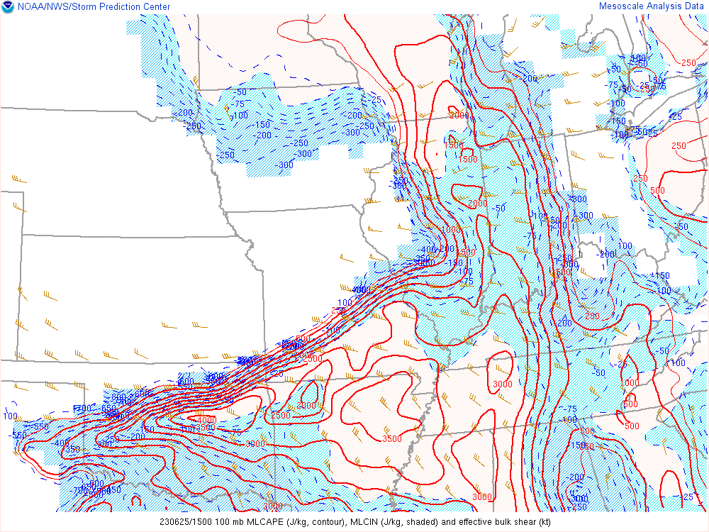 The first and only trip to the Midwest to chase this season. I passed on the earlier Midwest days, but was intrigued by this setup. A pseudo-dryline like setup in the Midwest in late June with a lot of CAPE. I considered chasing the previous day in Iowa, but opted to just head directly to Indiana.