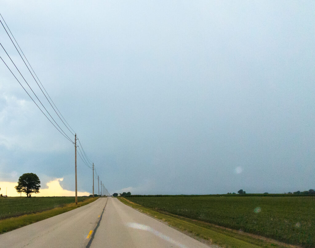 I first approached the storm from the east near Cicero. As the storm came into view, I could tell it had a very big plains-like wall cloud under it. Shortly after getting on it, it seemed like outflow was dominating and destroying the wall cloud and giving it a grungy look.