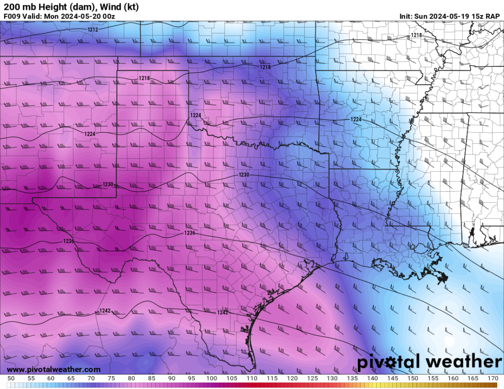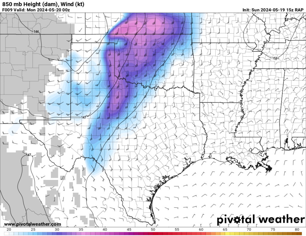 The RAP model was pretty consistent at hitting western Oklahoma with a strong 300mb jet and the low level jet (850mb) cranking up from 21 to 00Z and then really going wild after 00Z. After looking over the morning models, it seemed like somewhere in Western Oklahoma would be a good place to start.