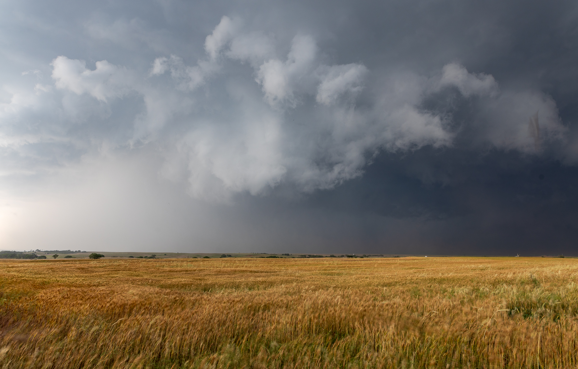 As I dropped south on highway 34, I was getting a good look at the structure of the storm. It was currently to my west, slowly drifting east. The bottom updraft had absolutely taken over and congealed into the main lone supercell in Western Oklahoma. The NWS slapped a tornado warning on it for awhile as I approached and setup ahead of the storm southwest of Butler next to Foss Lake.