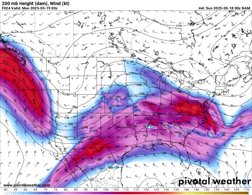 A very strong ski jump jet would slap into Oklahoma for the 17th, 18th and 19th. The 18th and 19th looked to be the better days, with excellent trough geometry.