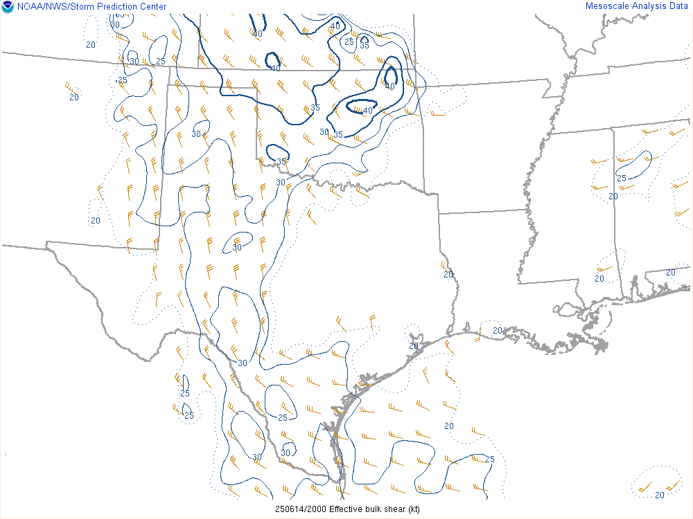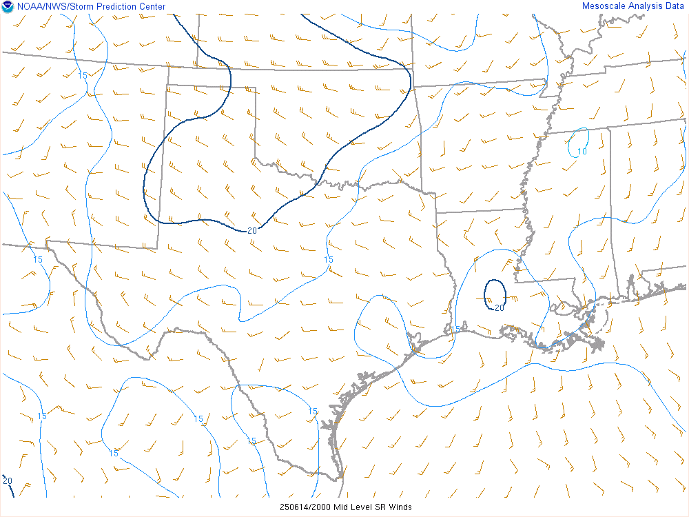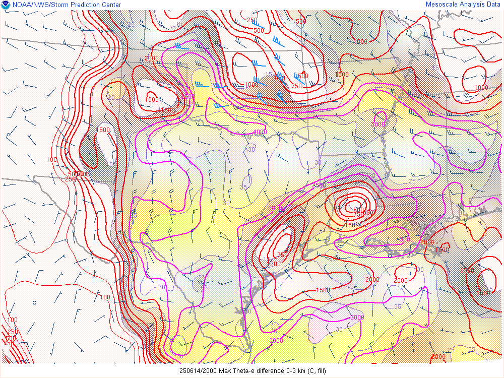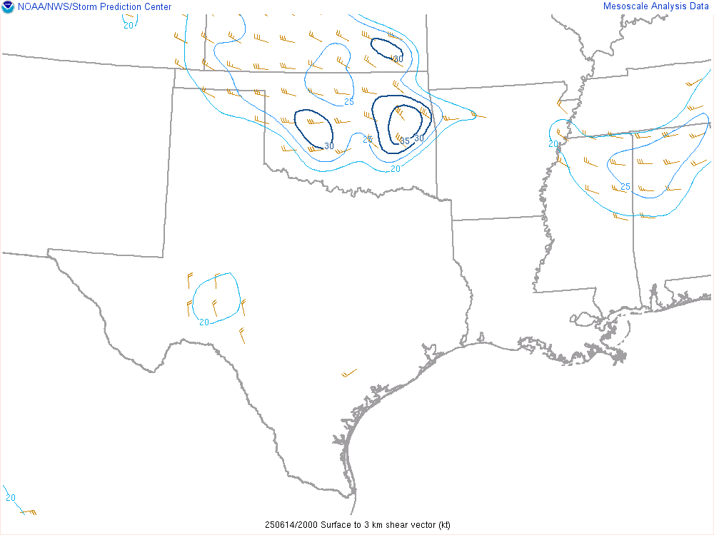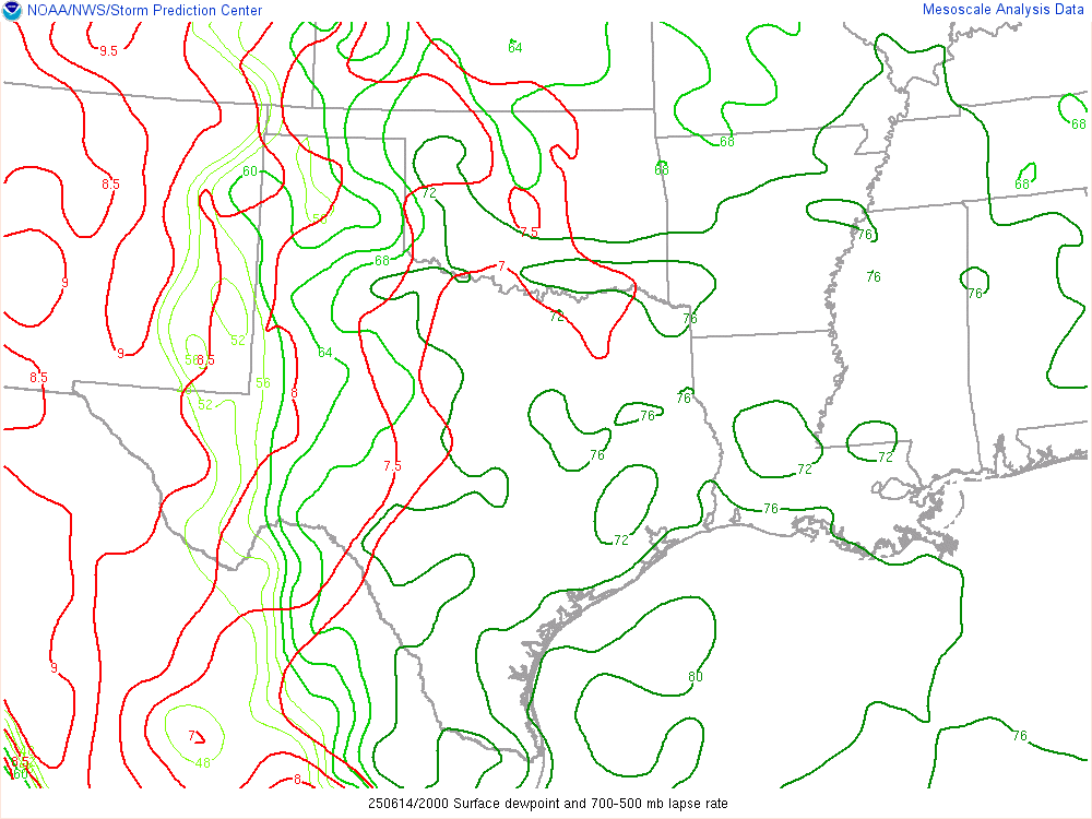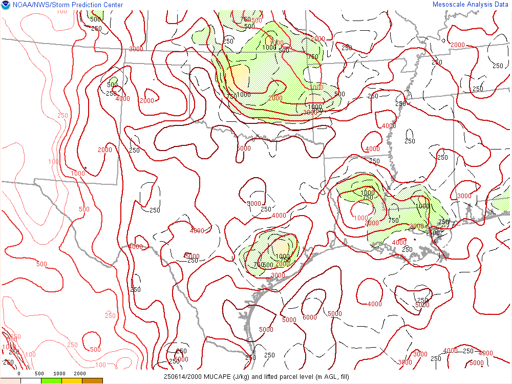 Not much of a forecast on this one as it was local and kind of a surprise day. As can be seen on the Mesoanalysis charts below, we had reasonably strong instability along an outflow boundary through Southern and Central/Western Oklahoma with a little bit of northwest 500mb flow.