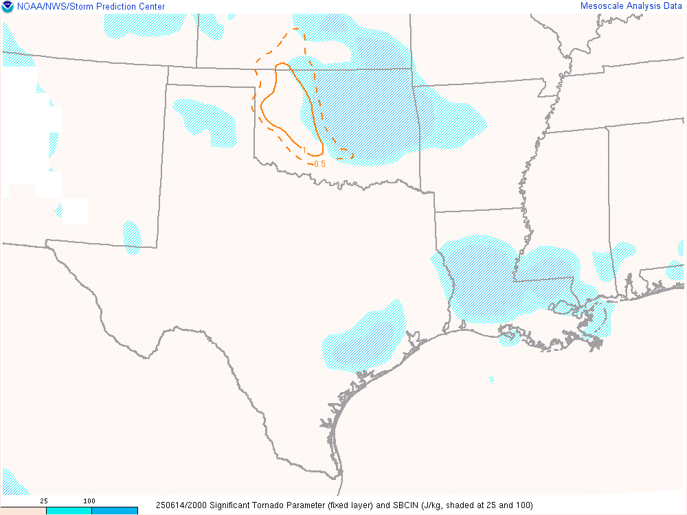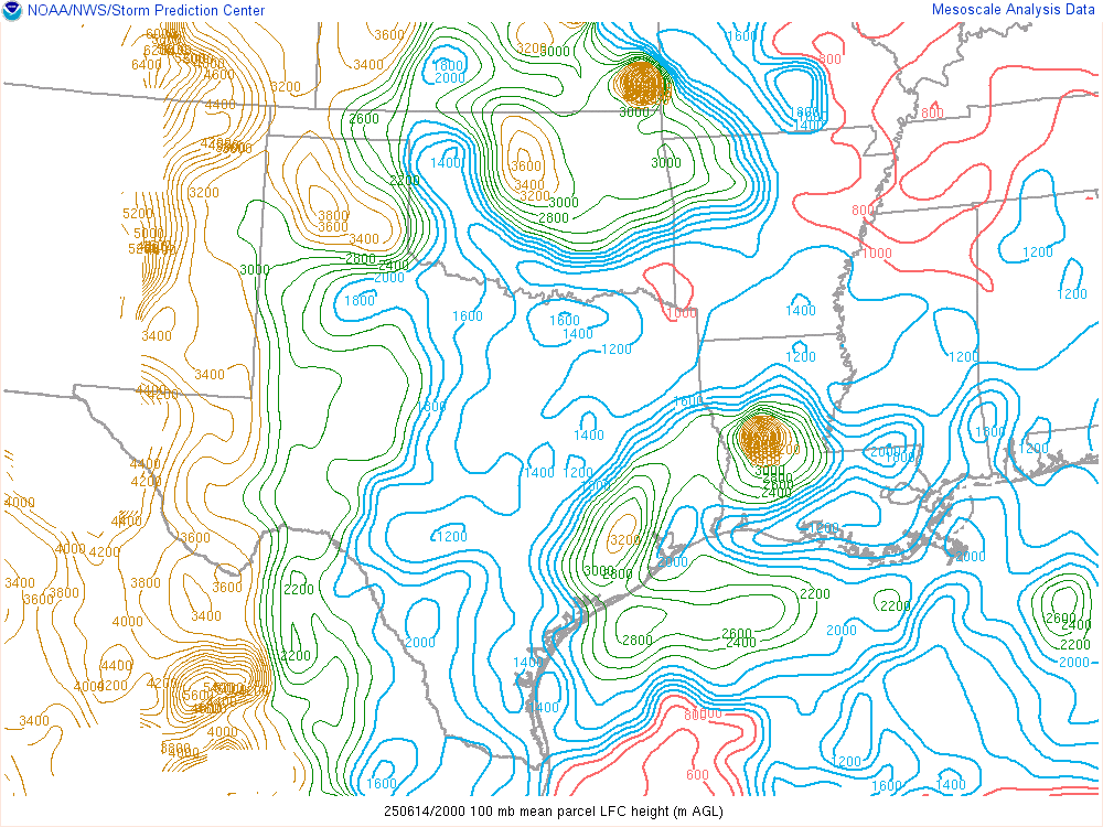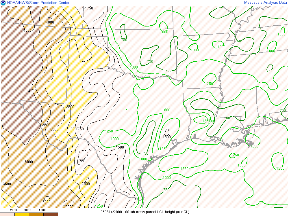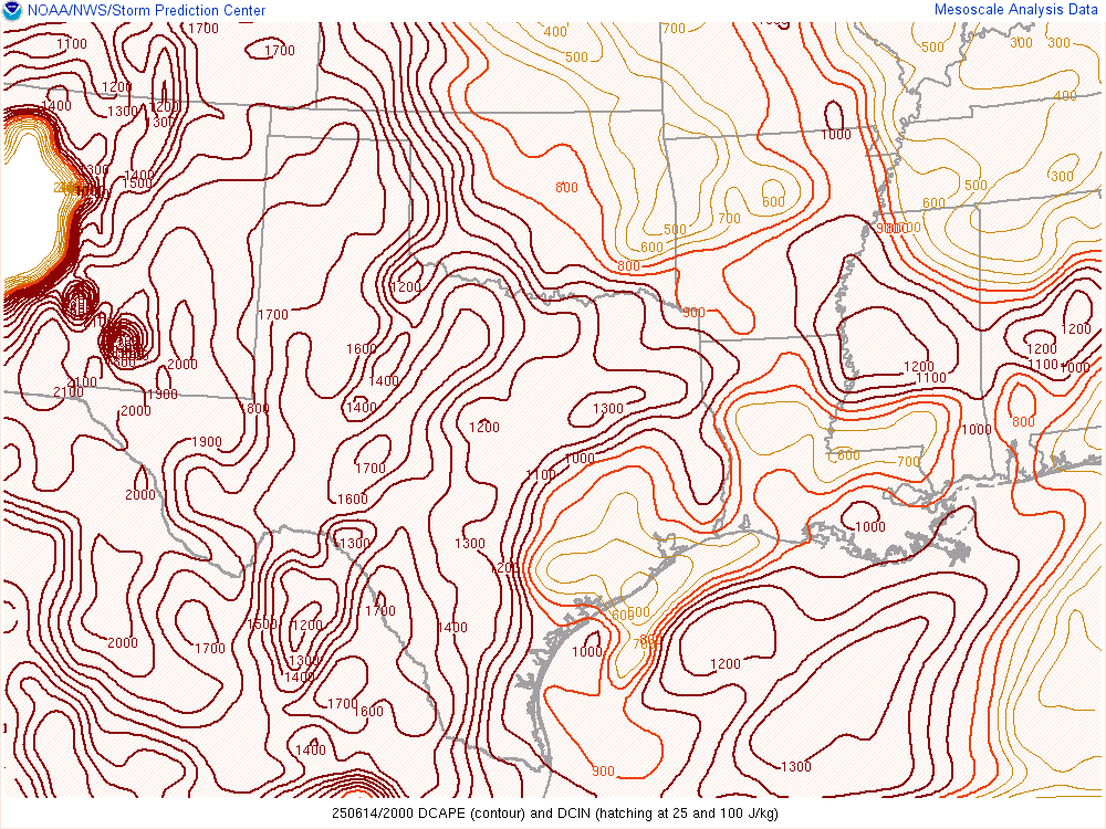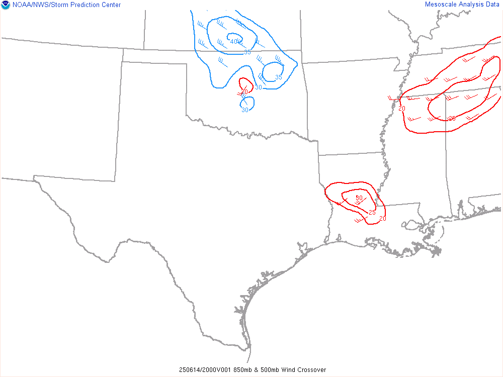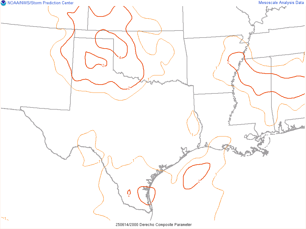 Not much of a forecast on this one as it was local and kind of a surprise day. As can be seen on the Mesoanalysis charts below, we had reasonably strong instability along an outflow boundary through Southern and Central/Western Oklahoma with a little bit of northwest 500mb flow.