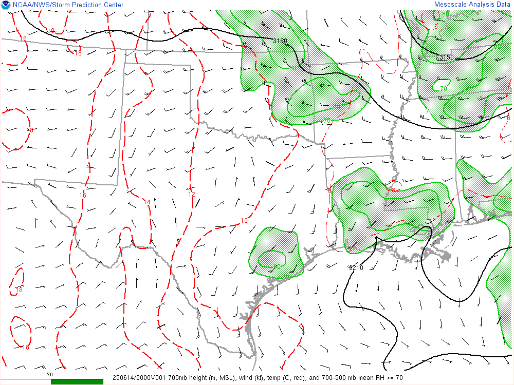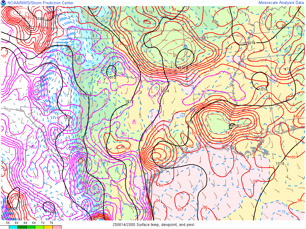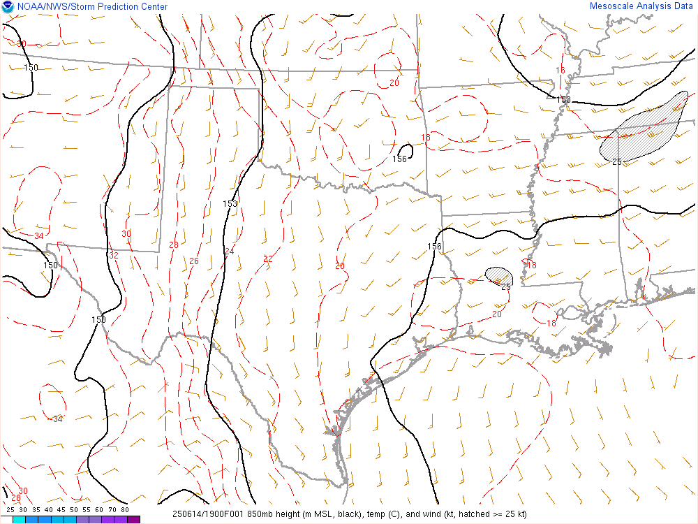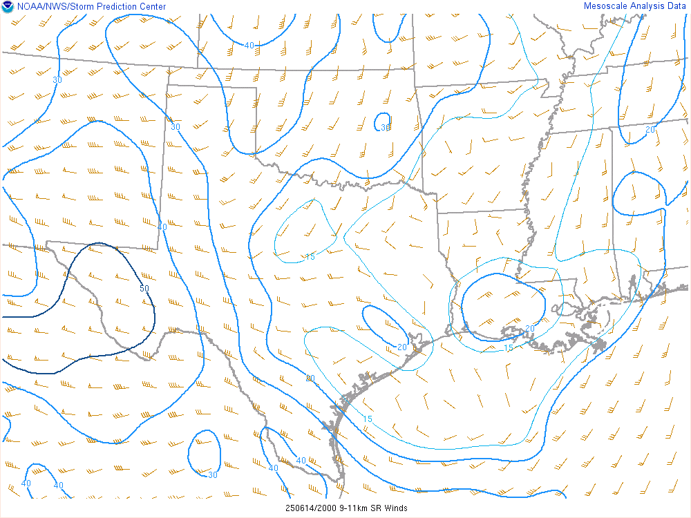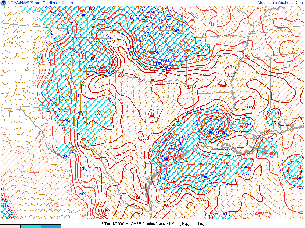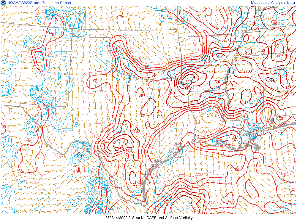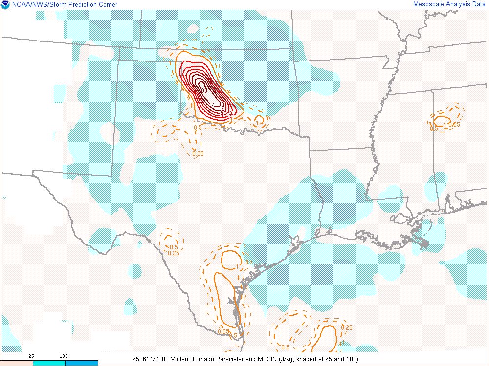Not much of a forecast on this one as it was local and kind of a surprise day. As can be seen on the Mesoanalysis charts below, we had reasonably strong instability along an outflow boundary through Southern and Central/Western Oklahoma with a little bit of northwest 500mb flow.