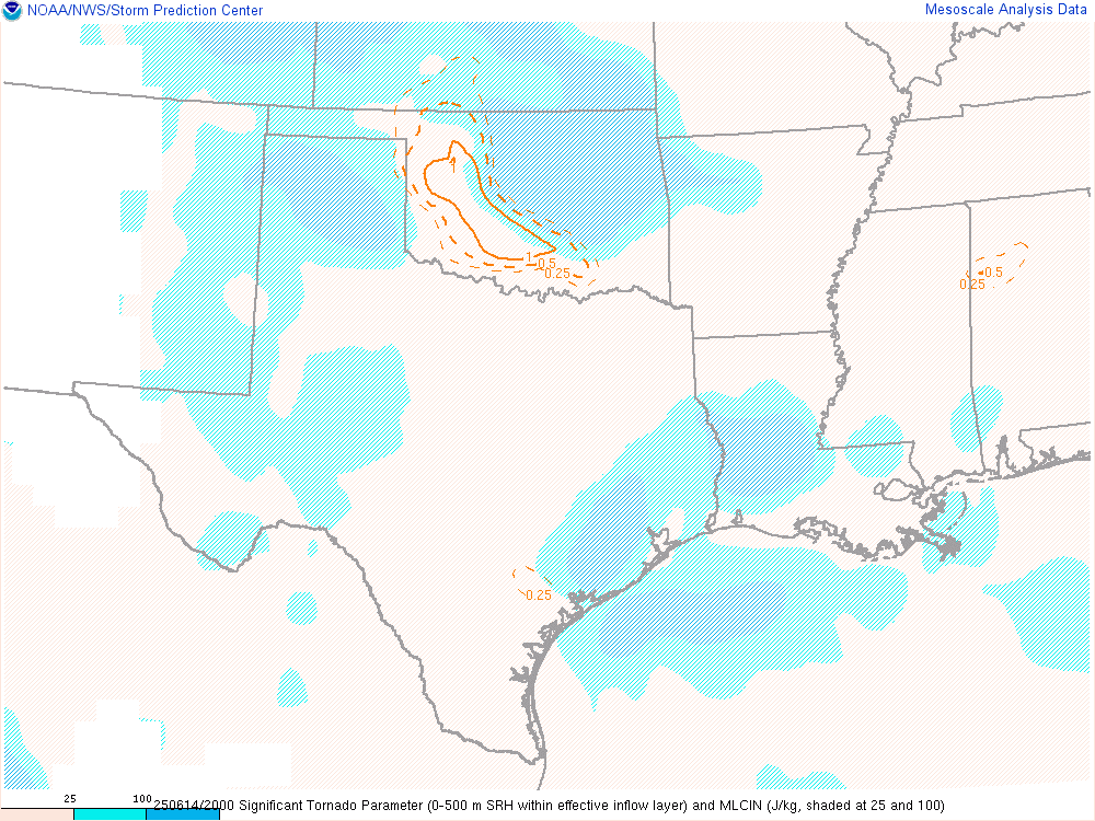 The 00Z Norman sounding showed some excellent turning in the atmosphere as well as a reasonably unstable airmass. This was taken on the cold side of the outflow boundary.