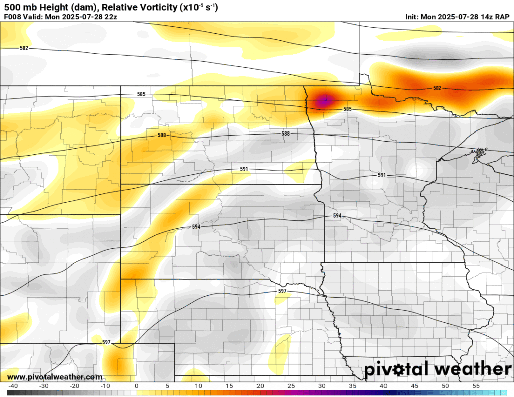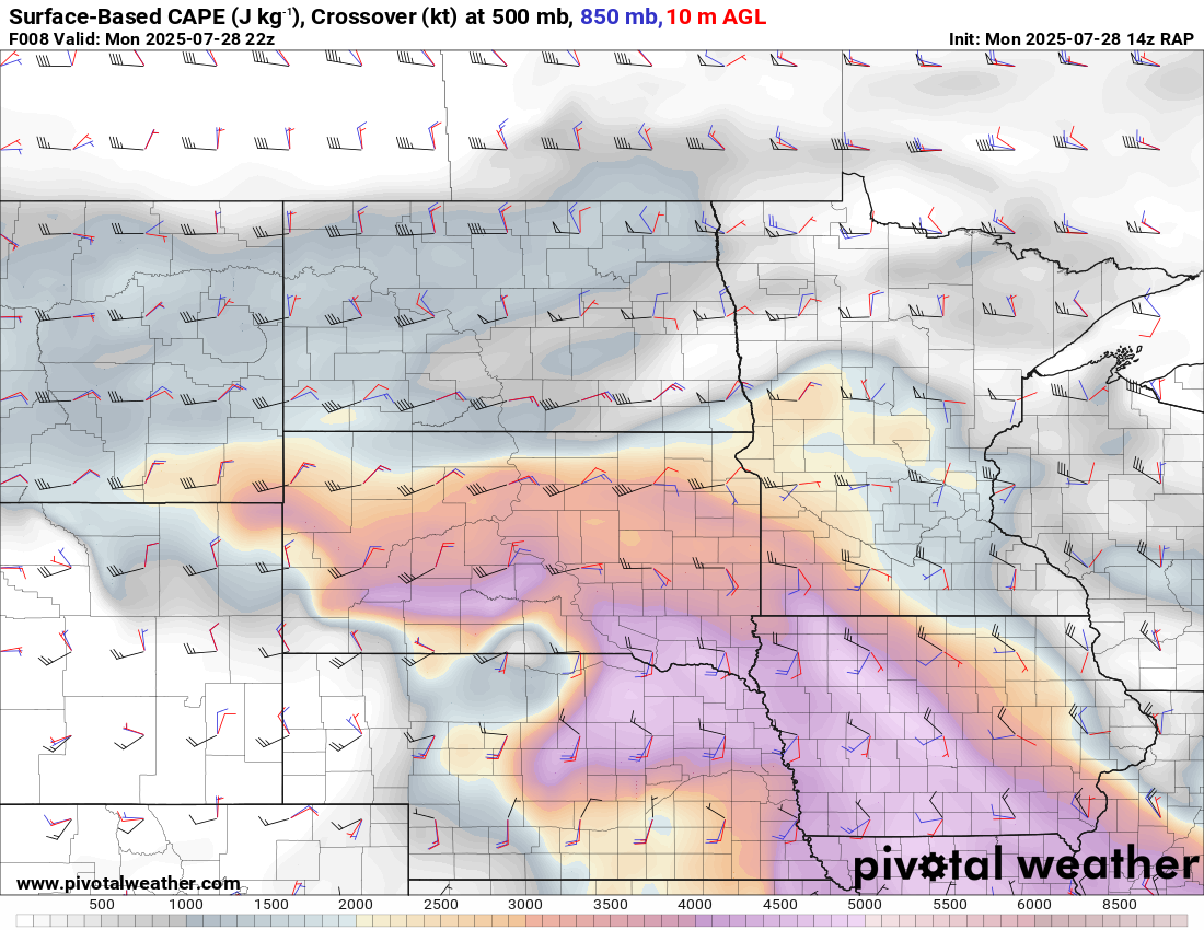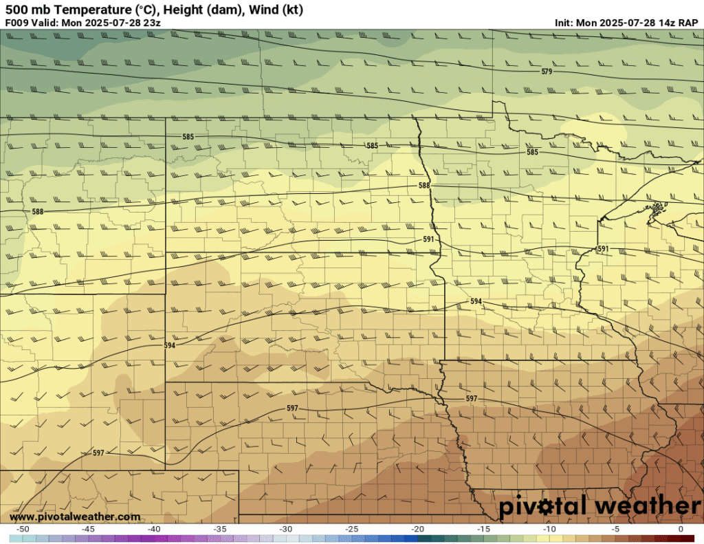 Between visiting the National Monument and work obligations, I became distracted. When I started moving west, the idea was to go to the Huron area or a little further west and/or north. Convective Initiation further southwest put me out of position big time. To compound the issue, I headed west out of Pipestone and continued through Madison and then tried to go through Salem. Road construction including a 15 minute wait for a pilot car and another long detour around Salem and back to I-90 cost me a lot of time.