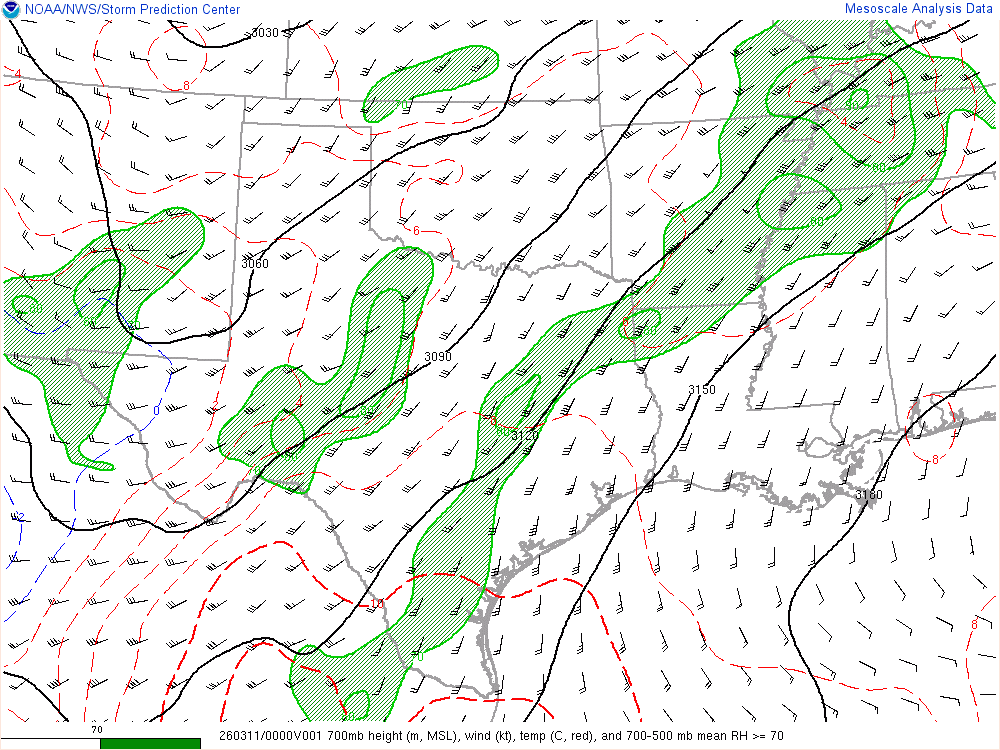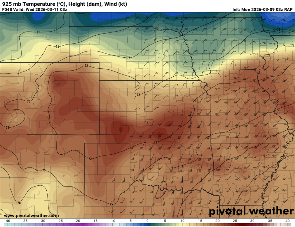 Moisture was very high for March. Dewpoints in the mid 60s were in place at 8am across the eastern 1/2 of Oklahoma.