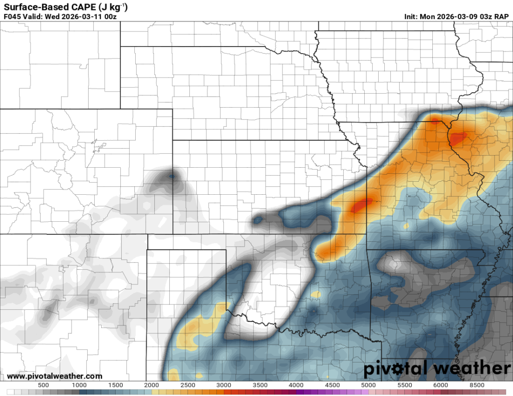 Running through the RAP, it had some weird chunk out of moisture/instability in Central Oklahoma. It was assuming there would be convection ongoing that would clear the warm sector. If that’s the case, this would be more in Eastern Oklahoma.