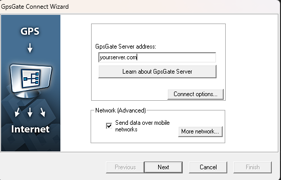 You will be given a dialogue to enter the URL. Click Connect Options on the next screen.