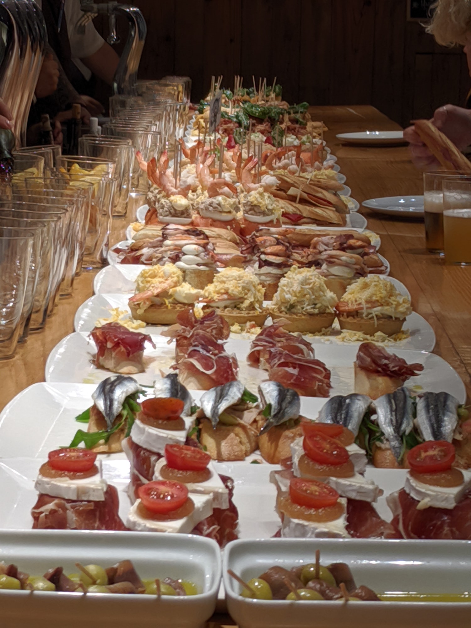 After waking up in Pamplona, we headed north towards San Sebastian. San Sebastian is famous for their pinchoes, so we stopped there for lunch. The spread inside the restaurant (pictured below) was incredible. Weather could have been better, but not bad for October.